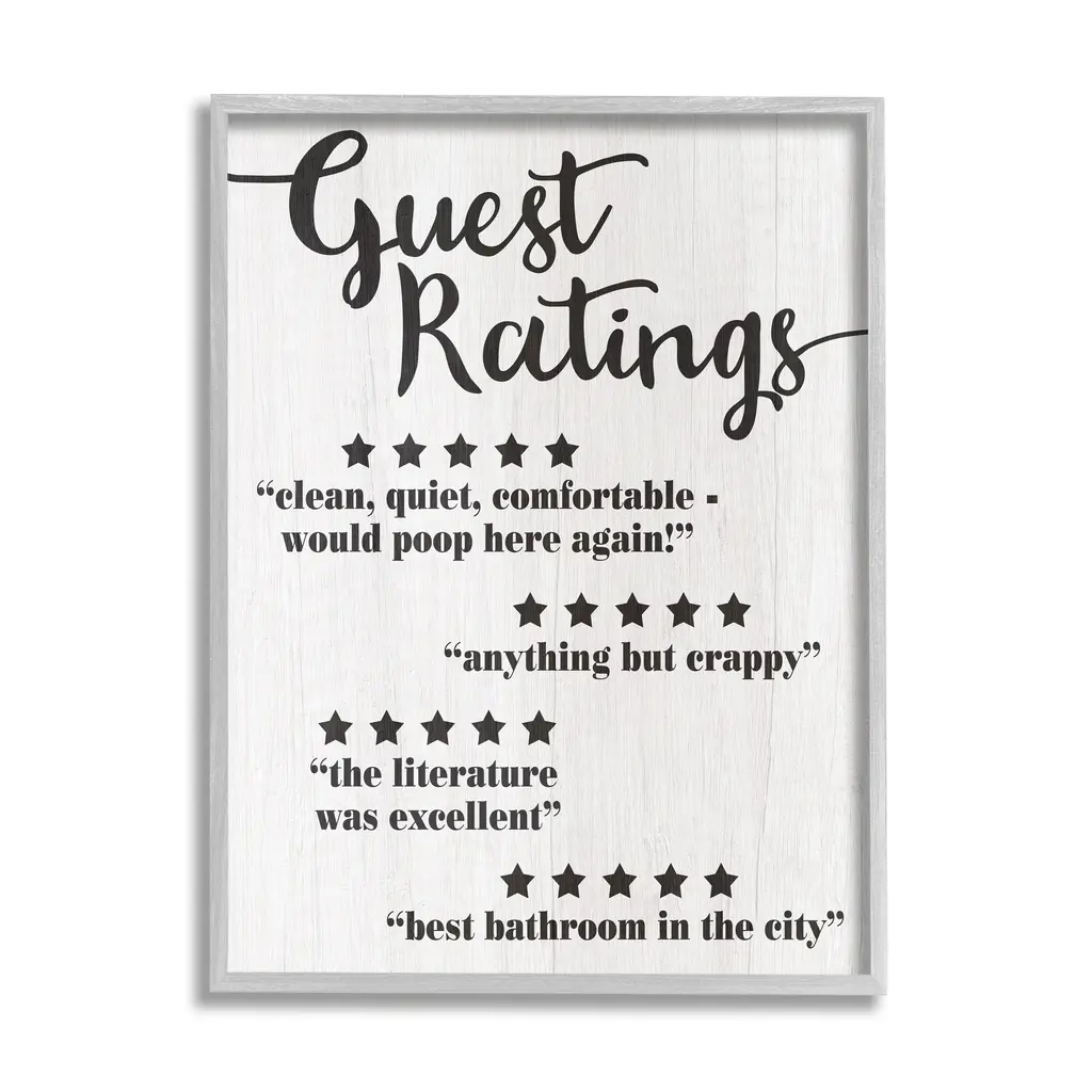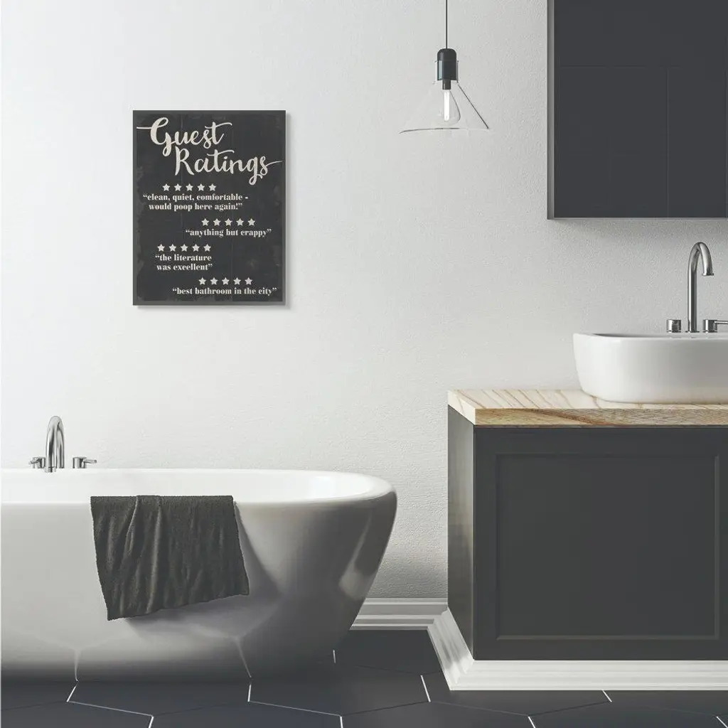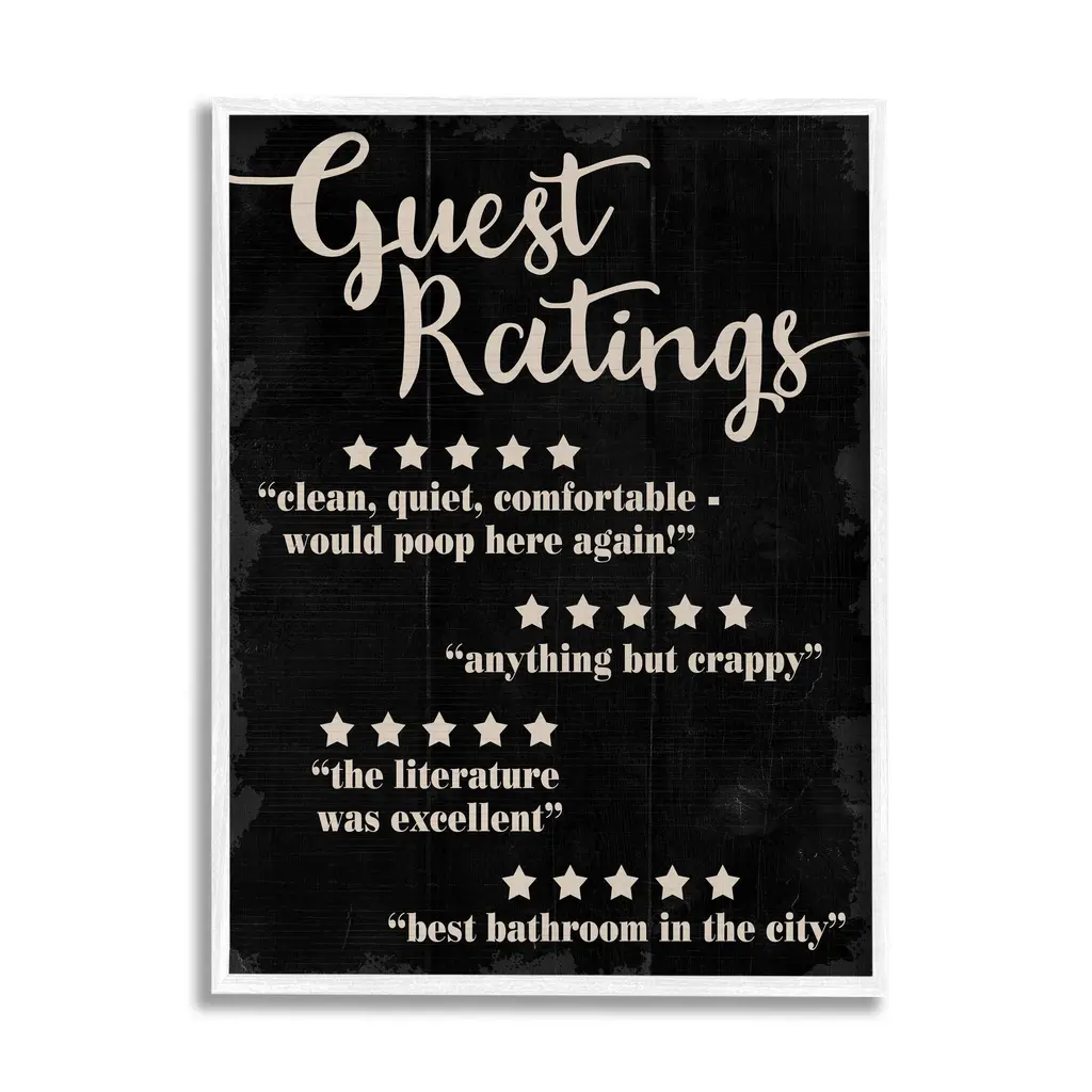 Stupell Guest Rating Five Star Bathroom Black Funny Word Design Black Framed Wall Art, Proudly Made In Usa - 24 X 30 - Black
