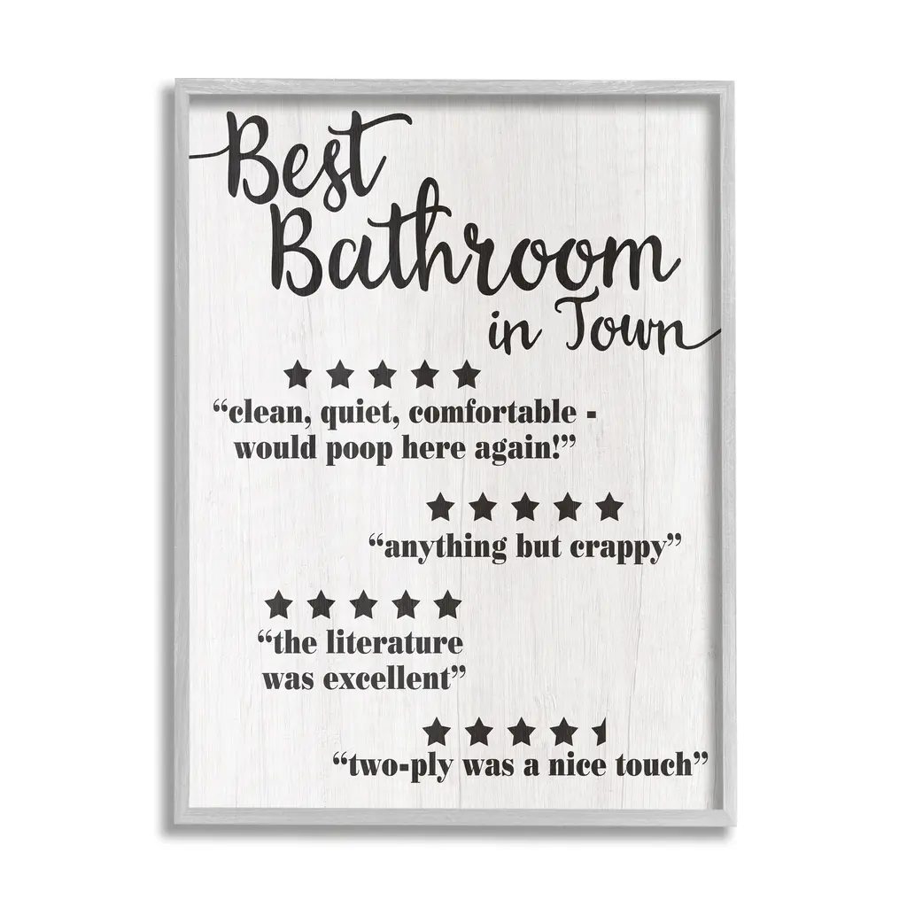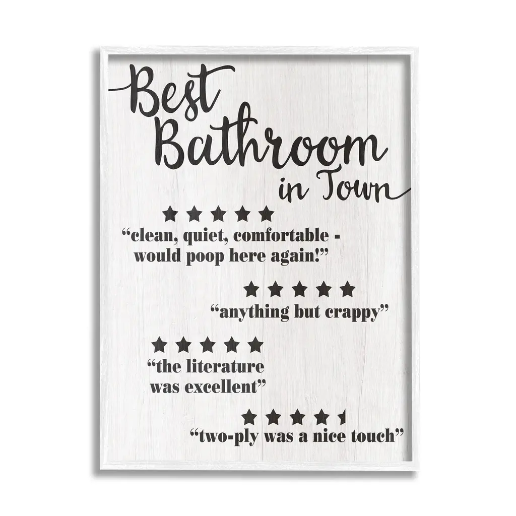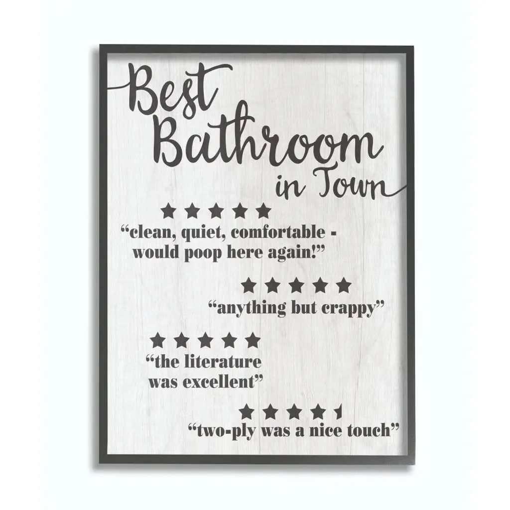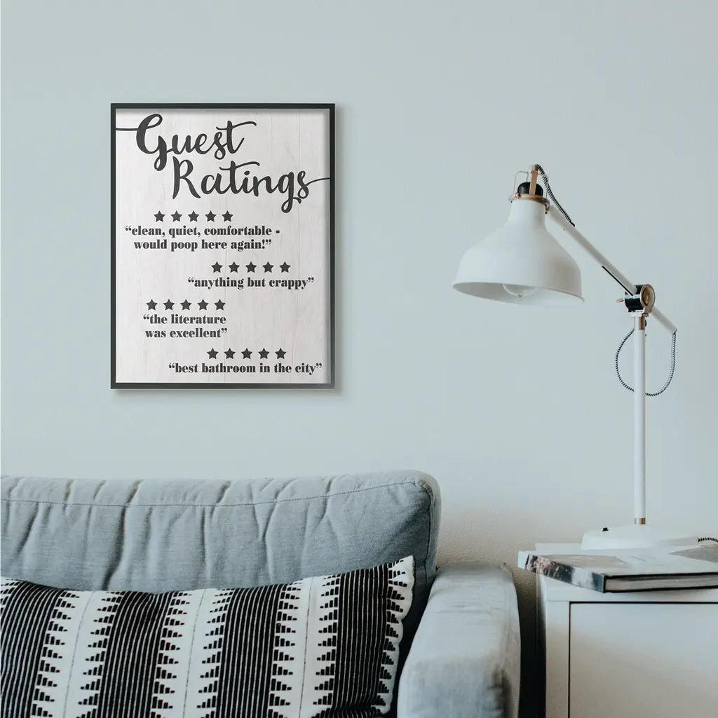 Stupell Guest Rating Five Star Bathroom Black Funny Word Design Black Framed Wall Art, Proudly Made In Usa - 24 X 30 - Black