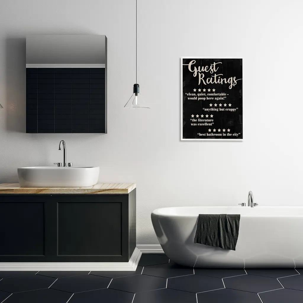 Stupell Guest Rating Five Star Bathroom Black Funny Word Design Black Framed Wall Art, Proudly Made In Usa - 24 X 30 - White