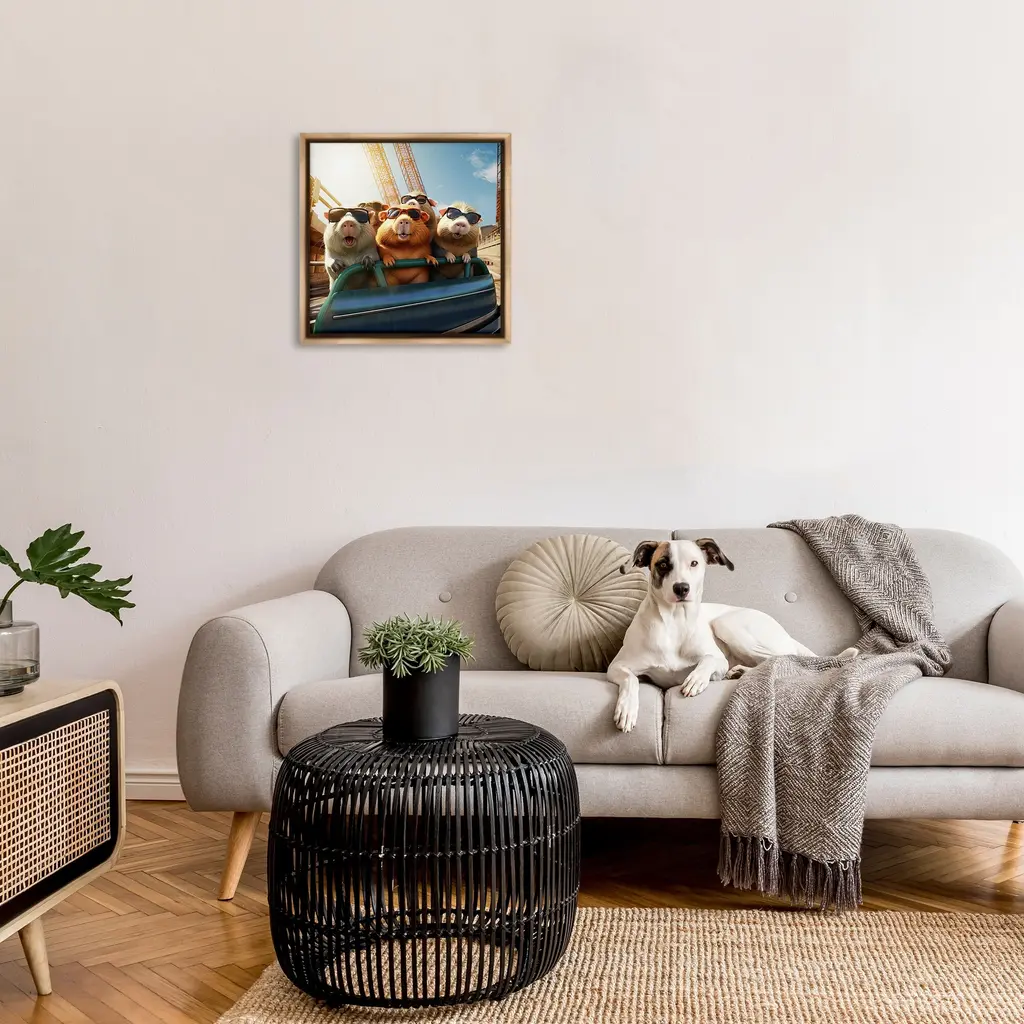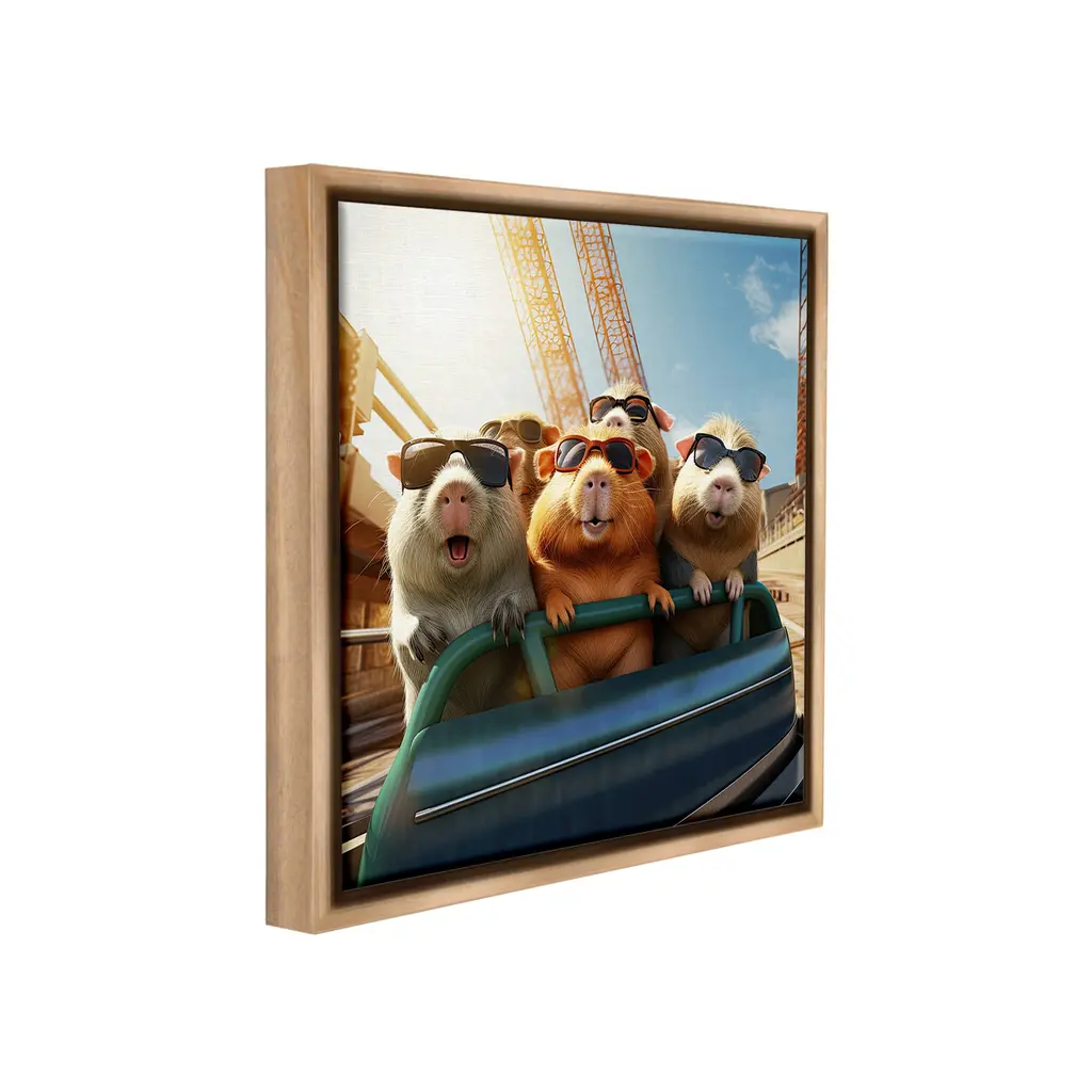Elevate your home or office to the next level with Stupell Framed Floating Canvas Wall Art. Our premium hand-stretched canvas is mounted securely into a sturdy lightweight frame. The museum-style gap between the wrapped canvas and the box frame gives the illusion of floating artwork. Stupell Wall Art is made in the USA.Features: Dimensions: 18 x 1.7 x 18 Frame, 17 x 1.5 x 17 Canvas ArtFloating Frame Canvas Products are available in sizes 18"x18" and 25"x25". All Floating Frame Canvas Products have a 1.7" Depth.Wall Art is Ready to Hang with Hardware Free Hanging. No Installation required. For Easy Set Up Lean or Layer Artwork on Shelf or Against Wall. Artwork is Permently Fixed into the Frame.Our elevated 1.7" Thick Floating Frame is the perfect complement to our canvas style Wall Art. We use only the highest quality inks in house with industry leading printing solutions. Canvas is hand stretched over a durable wood foundation and then mounted securly into a Modern Box Frame. Made in the USA.Artwork Relates To: Animal, Mammal, Rodent, Nature, Rural, Whisky, Capybara, Guinea Pig, Rollercoaster, Amusement ParkDesign by Jim Baldwin