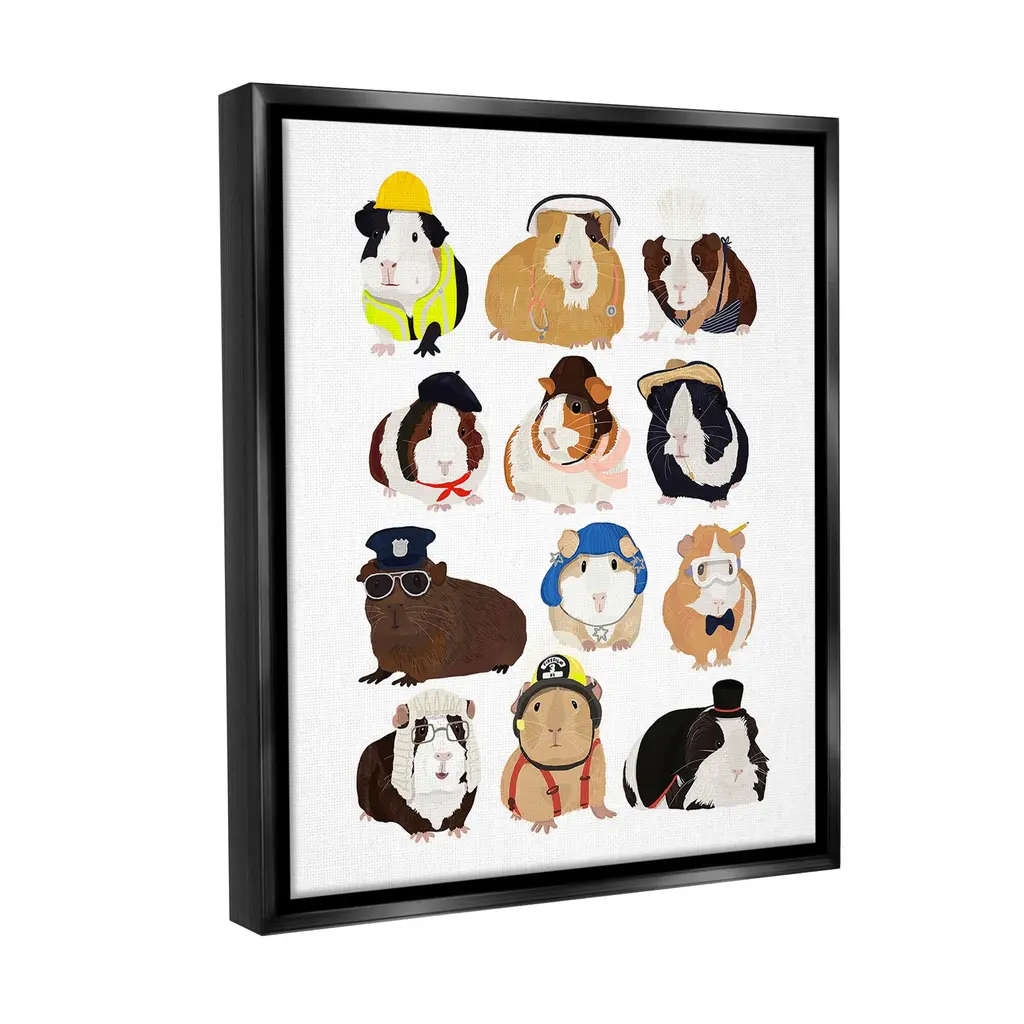 Stupell Guinea Pigs Various Uniforms Framed Floater Canvas Wall Art Design By Hanna Melin - 17 X 21 - Black