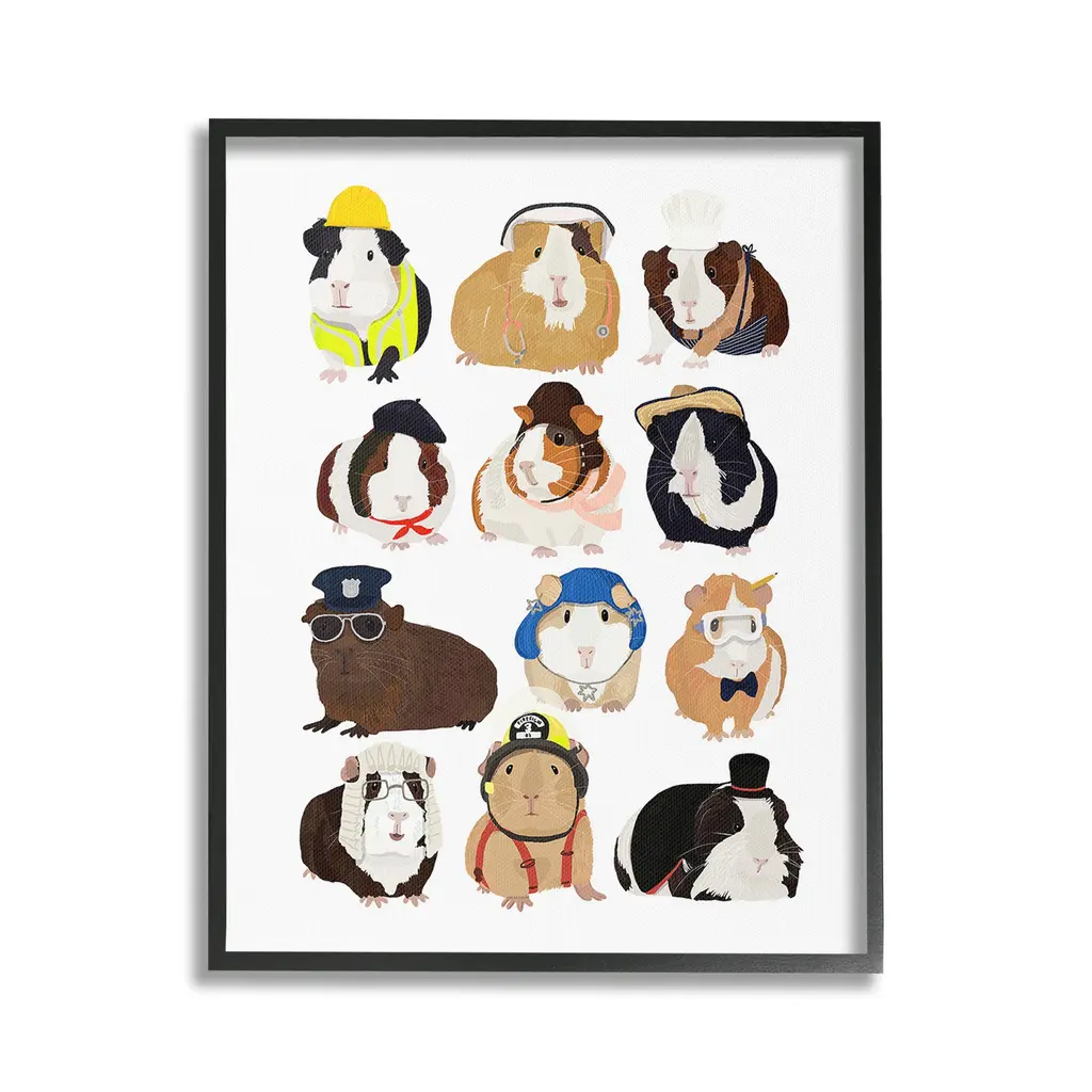 Stupell Guinea Pigs Various Uniforms Framed Floater Canvas Wall Art Design By Hanna Melin - 25 X 31 - Black