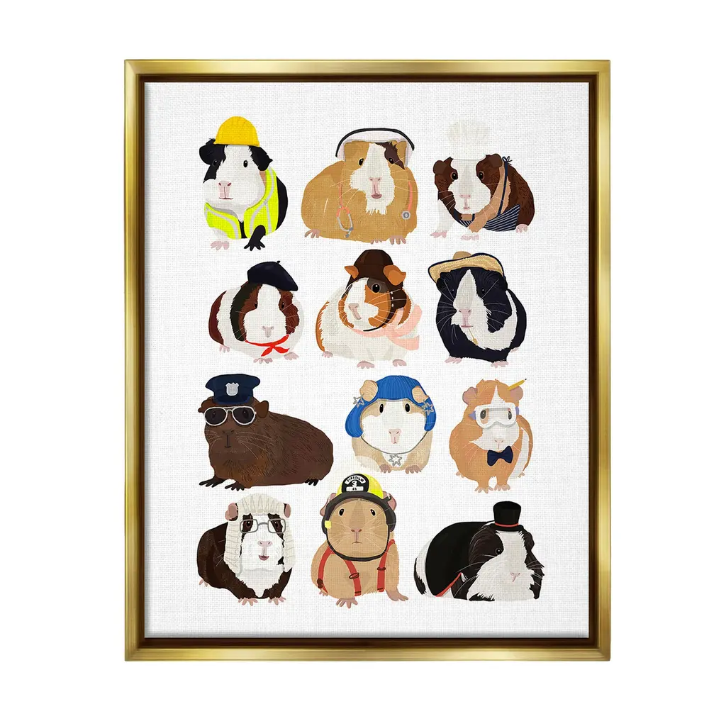 Elevate your home or office to the next level with Stupell Framed Floating Canvas Wall Art. Our premium hand-stretched canvas is mounted securely into a sturdy lightweight frame. The museum-style gap between the wrapped canvas and the box frame gives the illusion of floating artwork. Stupell Wall Art is made in the USA.Features: Dimensions: 17 x 1.7 x 21 Frame, 16 x 1.5 x 20 Canvas ArtFloating Frame Canvas Products are available in sizes 17"x21" and 25"x31". All Floating Frame Canvas Products have a 1.7" Depth.Wall Art is Ready to Hang with Hardware Free Hanging. No Installation required. For Easy Set Up Lean or Layer Artwork on Shelf or Against Wall. Artwork is Permently Fixed into the Frame.Our elevated 1.7" Thick Floating Frame is the perfect complement to our canvas style Wall Art. We use only the highest quality inks in house with industry leading printing solutions. Canvas is hand stretched over a durable wood foundation and then mounted securly into a Modern Box Frame. Made in the USA.Artwork Relates To: Animal, Pet, Guinea Pig, Rodent, Fashion, UniformDesign by Hanna Melin