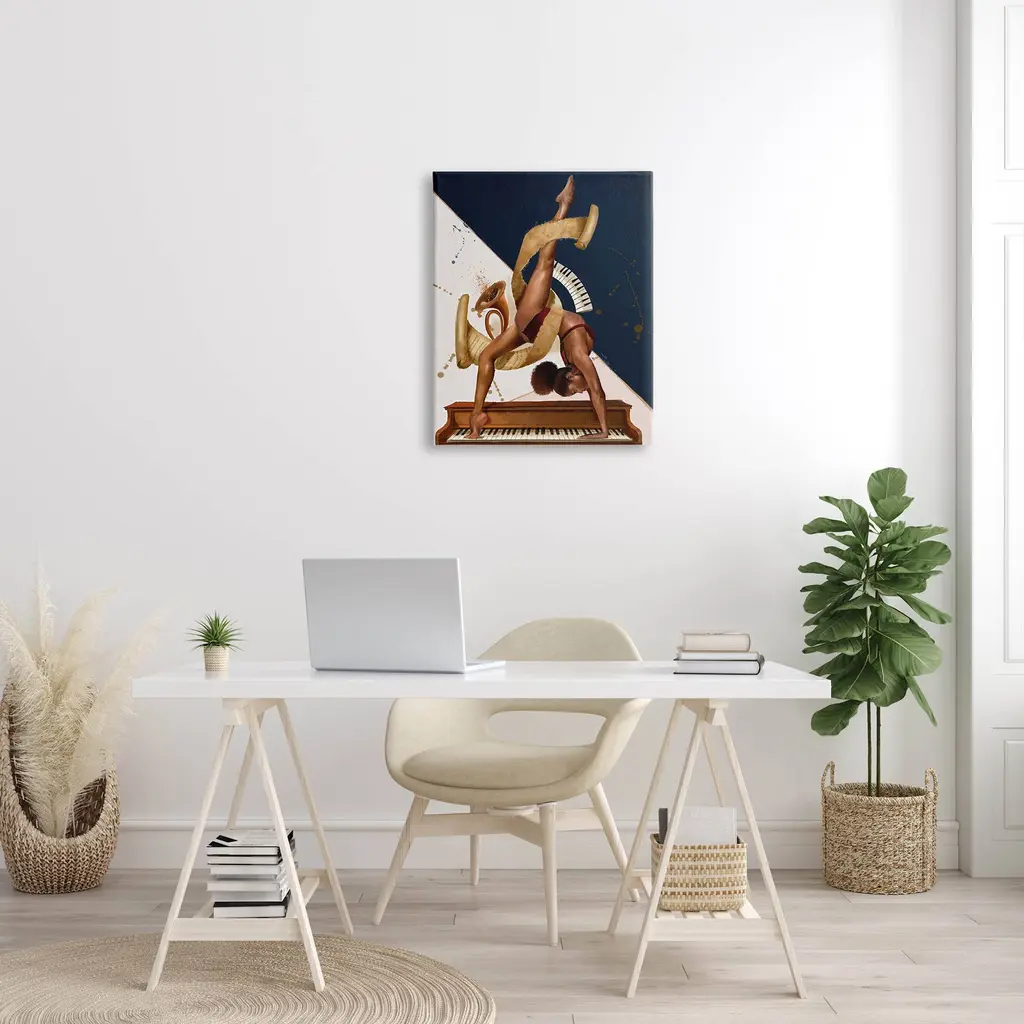Proudly made in the USA, Our stretched canvas is created with the highest standards. We use only the highest quality inks and canvas on our in house Mimaki printers, and then hand cut and stretch each piece over a 1.5 inch thick wooden frame for hanging. The art comes ready to hang with no installation required.Features: Dimensions: 16 x 1.5 x 20 InchesStretched Canvas Sizes Include Standard: 16 x 1.5 x 20 Large: 20 x 1.5 x 30 X-Large: 30 x 1.5 x 40 Oversized: 36 x 1.5 x 48Wall Art is Ready to Hang - No Installation or Hardware Needed. For Easy Set Up Lean or Layer Artwork on Shelf or Against Wall.Our stretched canvas is created with the highest standards. We use only the highest quality inks and canvas on our in house Mimaki printers, and then hand cut and stretch each piece over a 1.5 inch thick wooden frame for hanging. Made In USA.Artwork Relates To: Modern, Person, Musical Instrument, Trumpet, Music, Music Notes, Dance, Woman, Girl, Abstract, Surreal, Piano, Surreal, GymnasticsDesign by Salaam Muhammad