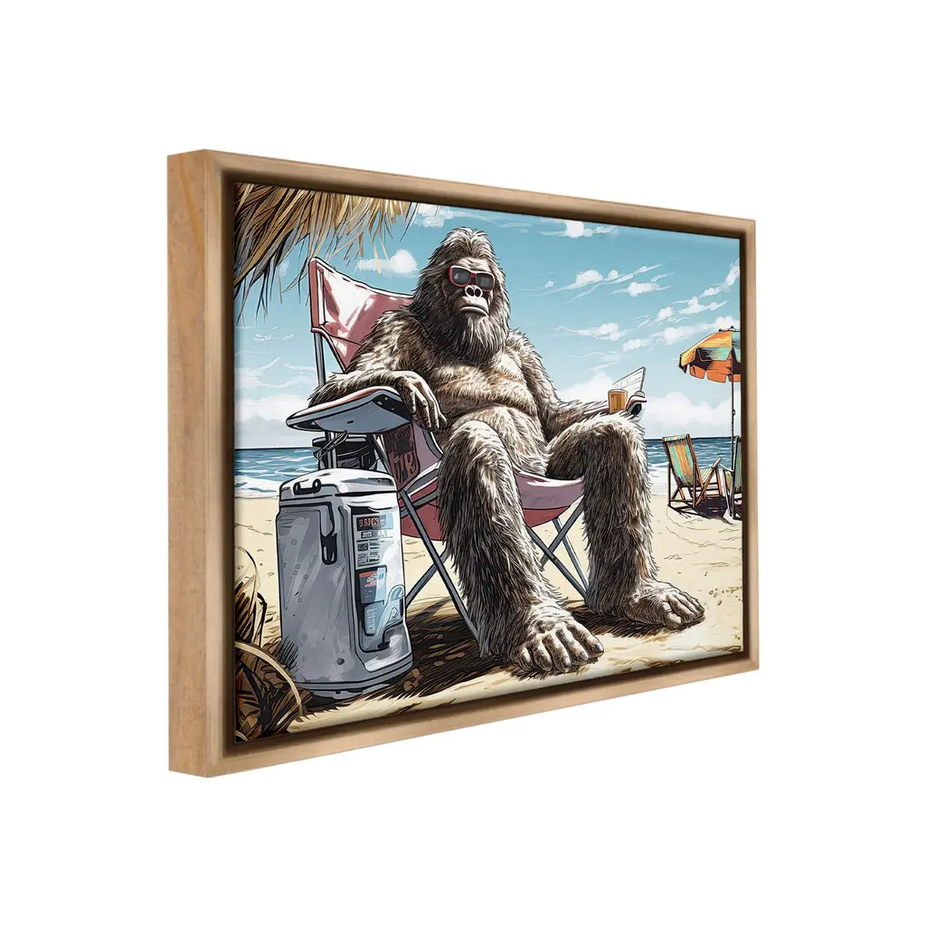 Elevate your home or office to the next level with Stupell Framed Floating Canvas Wall Art. Our premium hand-stretched canvas is mounted securely into a sturdy lightweight frame. The museum-style gap between the wrapped canvas and the box frame gives the illusion of floating artwork. Stupell Wall Art is made in the USA.Features: Dimensions: 21 x 1.7 x 17 Frame, 20 x 1.5 x 16 Canvas ArtFloating Frame Canvas Products are available in sizes 21"x17" and 31"x25". All Floating Frame Canvas Products have a 1.7" Depth.Wall Art is Ready to Hang with Hardware Free Hanging. No Installation required. For Easy Set Up Lean or Layer Artwork on Shelf or Against Wall. Artwork is Permently Fixed into the Frame.Our elevated 1.7" Thick Floating Frame is the perfect complement to our canvas style Wall Art. We use only the highest quality inks in house with industry leading printing solutions. Canvas is hand stretched over a durable wood foundation and then mounted securly into a Modern Box Frame. Made in the USA.Artwork Relates To: Humor, Funny, Monster, Sasquatch, Beach, Tropical, Summer, VacationDesign by Jim Baldwin