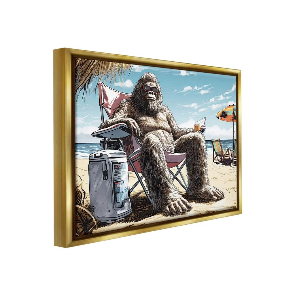 Elevate your home or office to the next level with Stupell Framed Floating Canvas Wall Art. Our premium hand-stretched canvas is mounted securely into a sturdy lightweight frame. The museum-style gap between the wrapped canvas and the box frame gives the illusion of floating artwork. Stupell Wall Art is made in the USA.Features: Dimensions: 21 x 1.7 x 17 Frame, 20 x 1.5 x 16 Canvas ArtFloating Frame Canvas Products are available in sizes 21"x17" and 31"x25". All Floating Frame Canvas Products have a 1.7" Depth.Wall Art is Ready to Hang with Hardware Free Hanging. No Installation required. For Easy Set Up Lean or Layer Artwork on Shelf or Against Wall. Artwork is Permently Fixed into the Frame.Our elevated 1.7" Thick Floating Frame is the perfect complement to our canvas style Wall Art. We use only the highest quality inks in house with industry leading printing solutions. Canvas is hand stretched over a durable wood foundation and then mounted securly into a Modern Box Frame. Made in the USA.Artwork Relates To: Humor, Funny, Monster, Sasquatch, Beach, Tropical, Summer, VacationDesign by Jim Baldwin