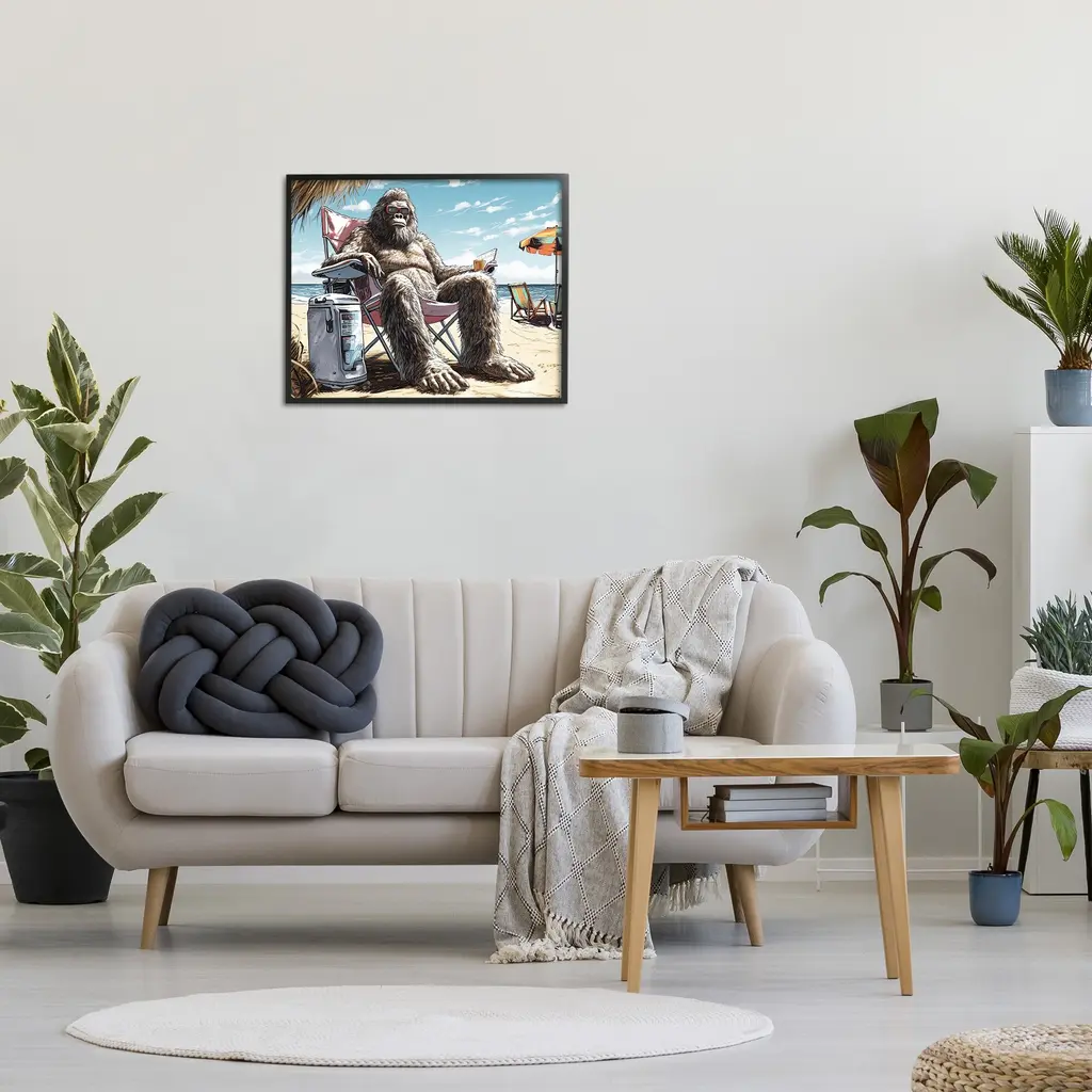Add dimension to any room with our textured Framed Giclee Artwork. Our framed artwork is securely mounted into a 1.5-inch thick wood grain frame and ready to hang. Frames are available in three alluring styles: black, gray farmhouse and white. In addition, you should check out our oversized options if you want a statement piece. Stupell Wall Art is made in the USA.Features: Dimensions: 14 x 1.5 x 11 FramedFramed Giclee Products are available in the sizes 14"x11", 20"x16" or 30"x24". All Framed Giclee Products have a 1.5" Depth. Wall Art is Ready to Hang with Hardware Free Hanging. No installation required. For Easy Set Up Lean or Layer Artwork on Shelf or Against Wall.Our giclée prints are carefully mounted on a durable MDF backing, and then perfectly finished in a 1.5 inch thick woodgrain frame. Mounted frame colors include black, gray farmhouse and white. Made In USA.Artwork Relates To: Humor, Funny, Monster, Sasquatch, Beach, Tropical, Summer, VacationDesign by Jim Baldwin