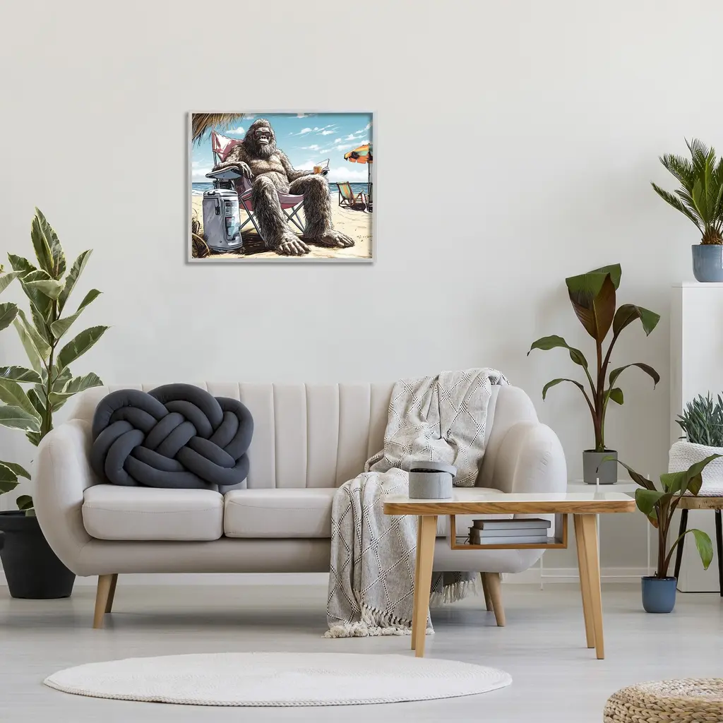 Add dimension to any room with our textured Framed Giclee Artwork. Our framed artwork is securely mounted into a 1.5-inch thick wood grain frame and ready to hang. Frames are available in three alluring styles: black, gray farmhouse and white. In addition, you should check out our oversized options if you want a statement piece. Stupell Wall Art is made in the USA.Features: Dimensions: 14 x 1.5 x 11 FramedFramed Giclee Products are available in the sizes 14"x11", 20"x16" or 30"x24". All Framed Giclee Products have a 1.5" Depth. Wall Art is Ready to Hang with Hardware Free Hanging. No installation required. For Easy Set Up Lean or Layer Artwork on Shelf or Against Wall.Our giclée prints are carefully mounted on a durable MDF backing, and then perfectly finished in a 1.5 inch thick woodgrain frame. Mounted frame colors include black, gray farmhouse and white. Made In USA.Artwork Relates To: Humor, Funny, Monster, Sasquatch, Beach, Tropical, Summer, VacationDesign by Jim Baldwin