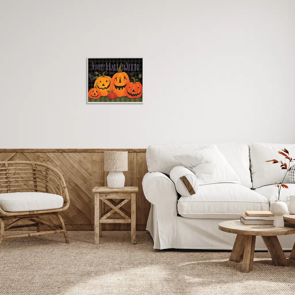 Add dimension to any room with our textured Framed Giclee Artwork. Our framed artwork is securely mounted into a 1.5-inch thick wood grain frame and ready to hang. Frames are available in three alluring styles: black, gray farmhouse and white. In addition, you should check out our oversized options if you want a statement piece. Stupell Wall Art is made in the USA.Features: Dimensions: 14 x 1.5 x 11 FramedFramed Giclee Products are available in the sizes 14"x11", 20"x16" or 30"x24". All Framed Giclee Products have a 1.5" Depth. Wall Art is Ready to Hang with Hardware Free Hanging. No installation required. For Easy Set Up Lean or Layer Artwork on Shelf or Against Wall.Our giclée prints are carefully mounted on a durable MDF backing, and then perfectly finished in a 1.5 inch thick woodgrain frame. Mounted frame colors include black, gray farmhouse and white. Made In USA.Artwork Relates To: Festival, Halloween, Jack-o-lantern, Pumpkin, Botanical, Bat, Plaid, Pattern, Happy HalloweenDesign by Bernadette Deming