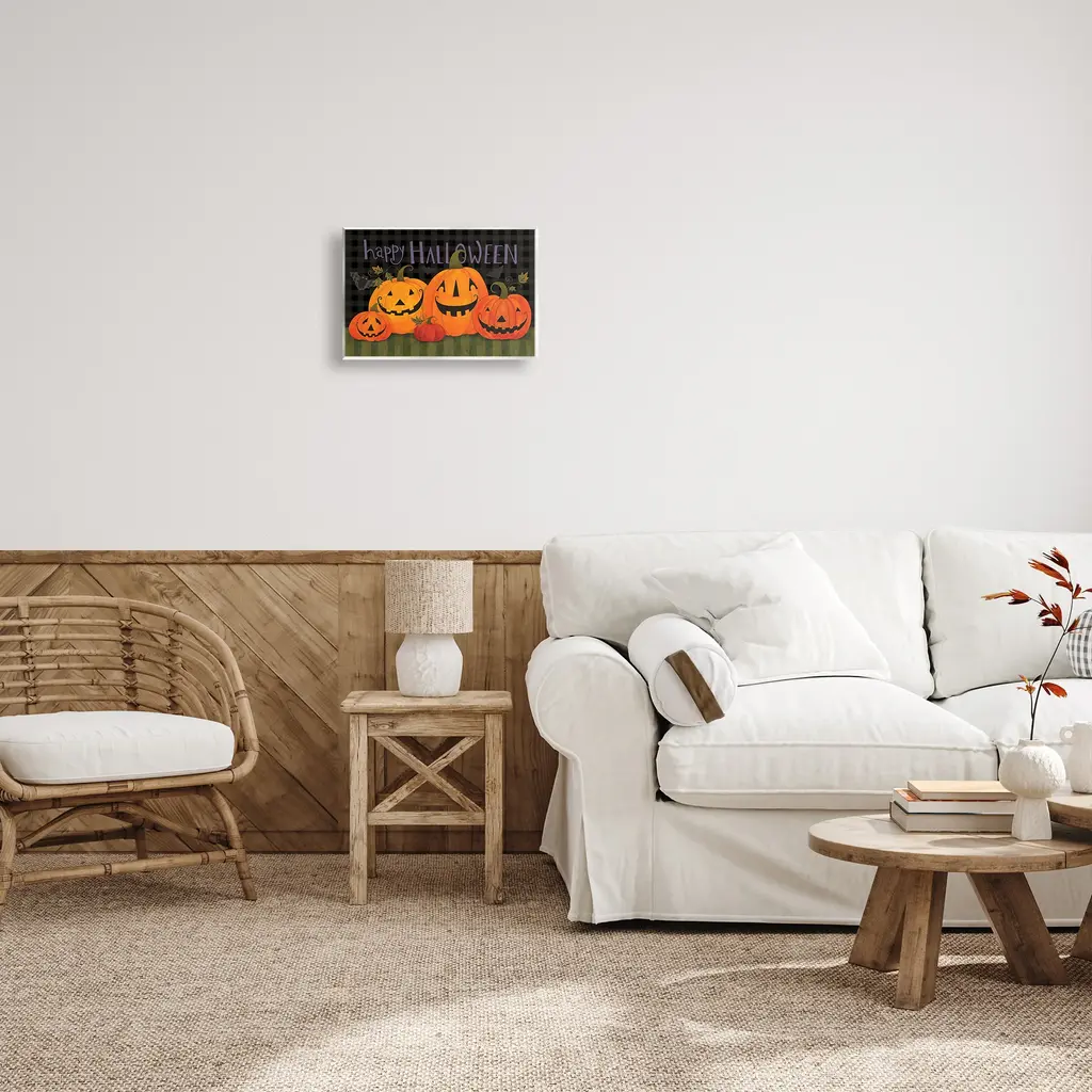 Stupell Halloween Smiling Jack-O-Lanterns Wall Plaque Art Design By Bernadette Deming - 15 X 10