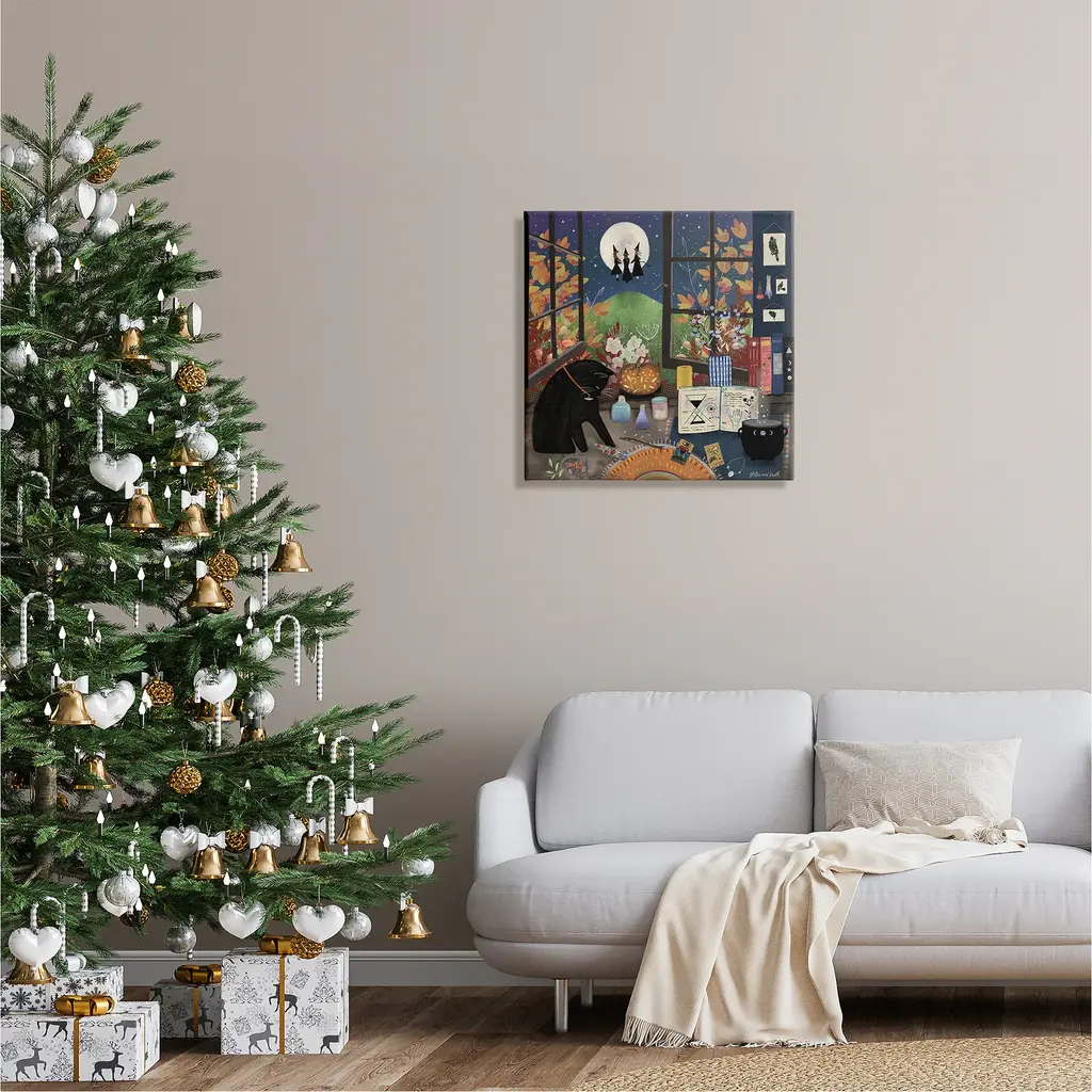 We create our stretched canvas to the highest standards. Using only the highest quality inks and canvas on Mimaki printers, we hand-cut and stretch each piece over a 1.5-inch thick wooden frame for hanging. As a result, the art comes ready to hang on the sturdy ledge with no installation required. Stupell Wall Art is made in the USA.Features: Dimensions: 17 x 1.5 x 17 InchesStretched Canvas Sizes Include Standard: 17 x 1.5 x 17 Large: 24 x 1.5 x 24 X-Large: 30 x 1.5 x 30 Oversized: 36 x 1.5 x 36Wall Art is Ready to Hang - No Installation or Hardware Needed. For Easy Set Up Lean or Layer Artwork on Shelf or Against Wall.Our stretched canvas is created with the highest standards. We use only the highest quality inks and canvas on our in house Mimaki printers, and then hand cut and stretch each piece over a 1.5 inch thick wooden frame for hanging. Made In USA.Artwork Relates To: Witch, Cat, Black Cat, Seasonal, Halloween, Autumn, Moon, Night, Tarot Cards, BotanicalDesign by Jacqueline Wild