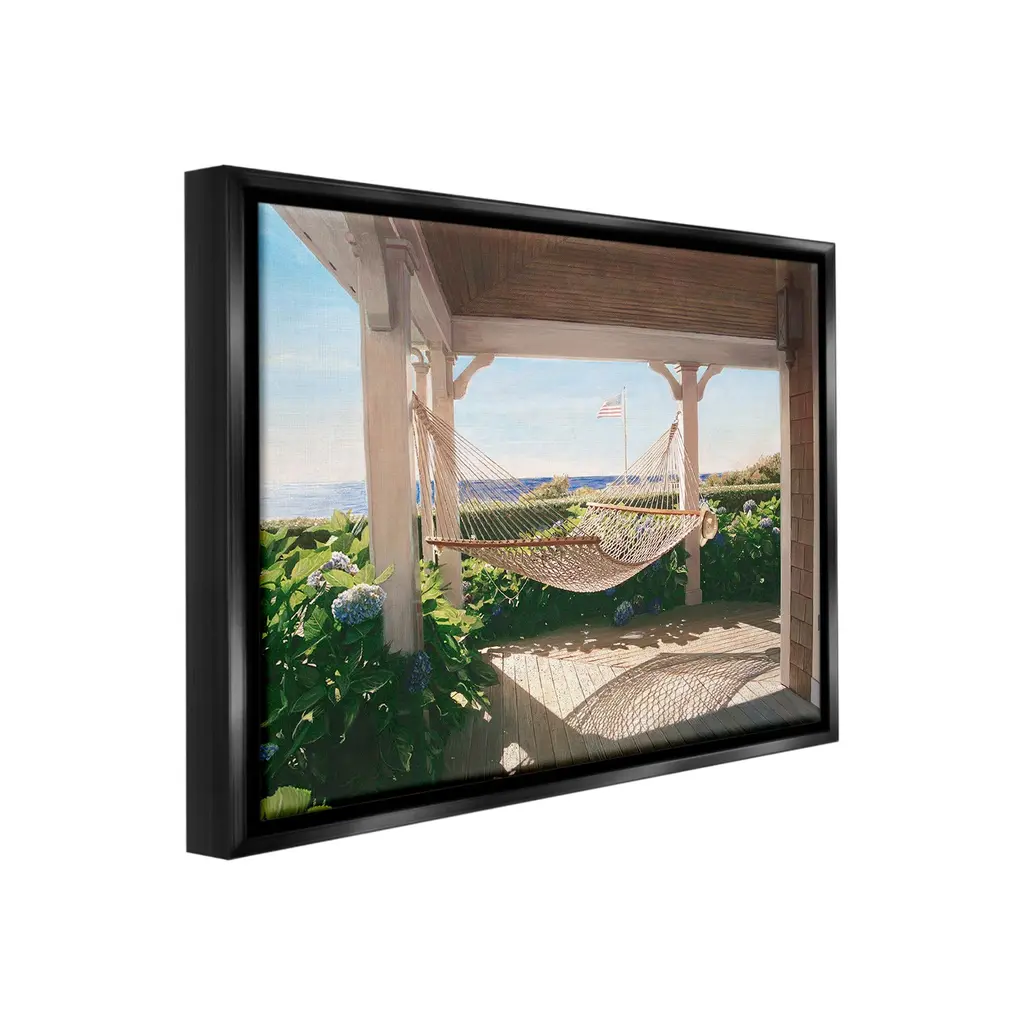 Elevate your home or office to the next level with Stupell Framed Floating Canvas Wall Art. Our premium hand-stretched canvas is mounted securely into a sturdy lightweight frame. The museum-style gap between the wrapped canvas and the box frame gives the illusion of floating artwork. Stupell Wall Art is made in the USA.Features: Dimensions: 21 x 1.7 x 17 Frame, 20 x 1.5 x 16 Canvas ArtFloating Frame Canvas Products are available in sizes 21"x17" and 31"x25". All Floating Frame Canvas Products have a 1.7" Depth.Wall Art is Ready to Hang with Hardware Free Hanging. No Installation required. For Easy Set Up Lean or Layer Artwork on Shelf or Against Wall. Artwork is Permently Fixed into the Frame.Our elevated 1.7" Thick Floating Frame is the perfect complement to our canvas style Wall Art. We use only the highest quality inks in house with industry leading printing solutions. Canvas is hand stretched over a durable wood foundation and then mounted securly into a Modern Box Frame. Made in the USA.Artwork Relates To: House, Porch, Balcony, Hammock, Flag, American Flag, Ocean, Nautical, Beach, Coastal, Cape, BayDesign by Tom Mielko