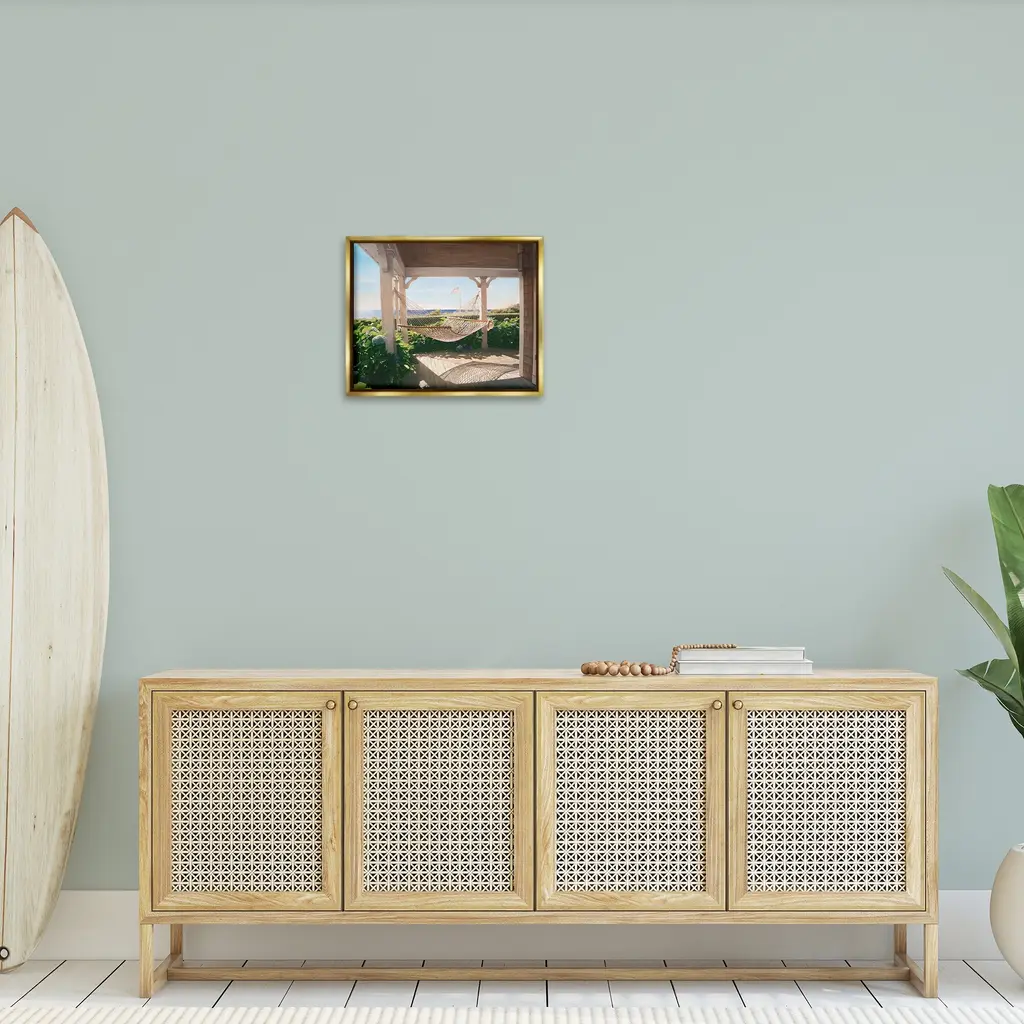 Stupell Hammock & Coastal Porch Framed Floater Canvas Wall Art Design By Tom Mielko - 21 X 17 - Gold