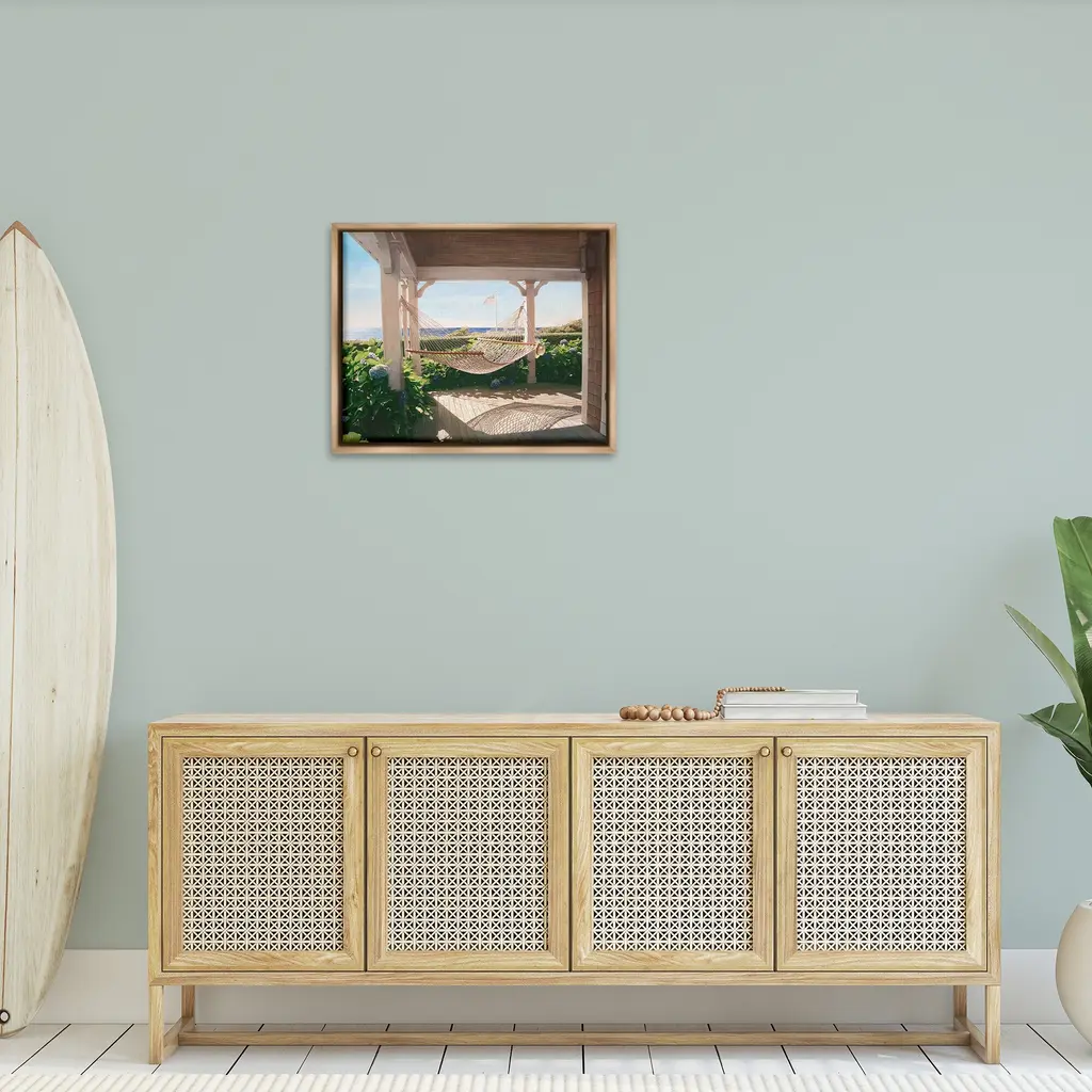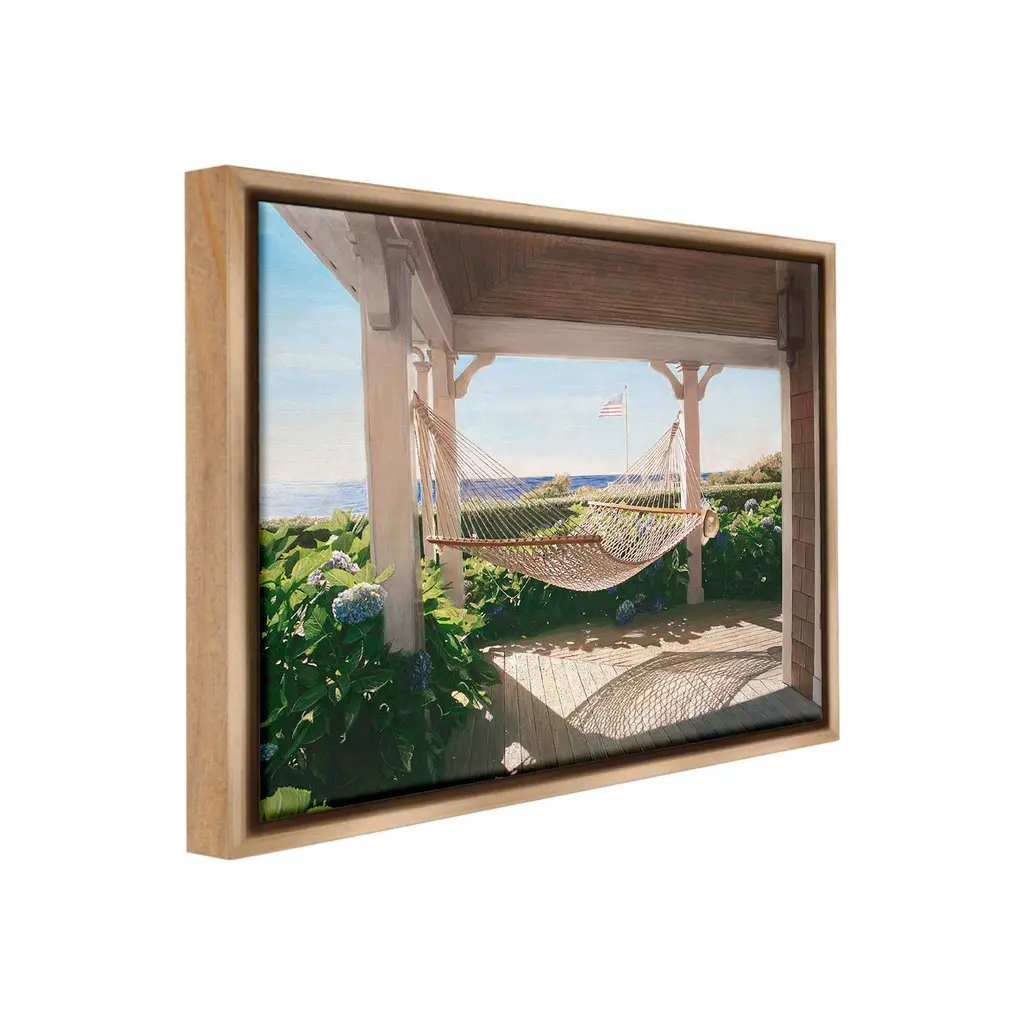 Elevate your home or office to the next level with Stupell Framed Floating Canvas Wall Art. Our premium hand-stretched canvas is mounted securely into a sturdy lightweight frame. The museum-style gap between the wrapped canvas and the box frame gives the illusion of floating artwork. Stupell Wall Art is made in the USA.Features: Dimensions: 21 x 1.7 x 17 Frame, 20 x 1.5 x 16 Canvas ArtFloating Frame Canvas Products are available in sizes 21"x17" and 31"x25". All Floating Frame Canvas Products have a 1.7" Depth.Wall Art is Ready to Hang with Hardware Free Hanging. No Installation required. For Easy Set Up Lean or Layer Artwork on Shelf or Against Wall. Artwork is Permently Fixed into the Frame.Our elevated 1.7" Thick Floating Frame is the perfect complement to our canvas style Wall Art. We use only the highest quality inks in house with industry leading printing solutions. Canvas is hand stretched over a durable wood foundation and then mounted securly into a Modern Box Frame. Made in the USA.Artwork Relates To: House, Porch, Balcony, Hammock, Flag, American Flag, Ocean, Nautical, Beach, Coastal, Cape, BayDesign by Tom Mielko