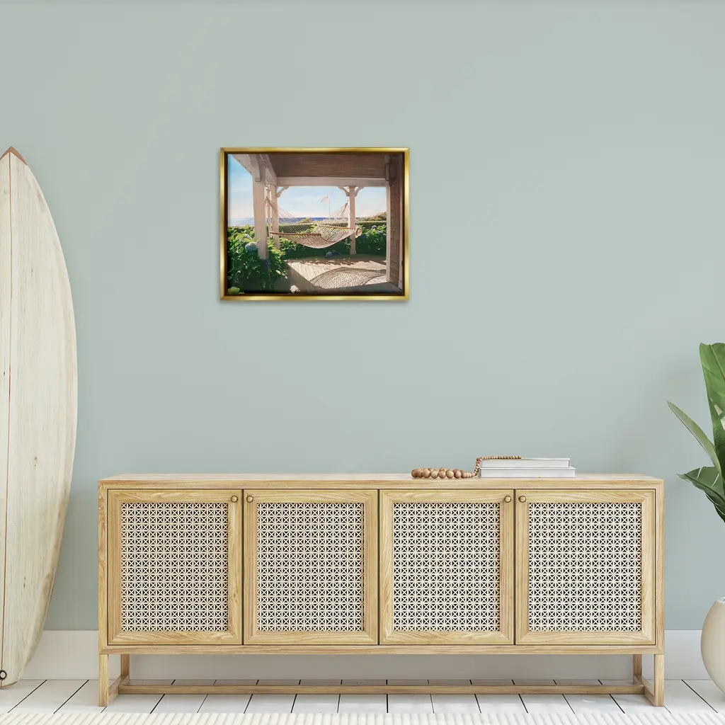 Stupell Hammock & Coastal Porch Framed Floater Canvas Wall Art Design By Tom Mielko - 31 X 25 - Gold