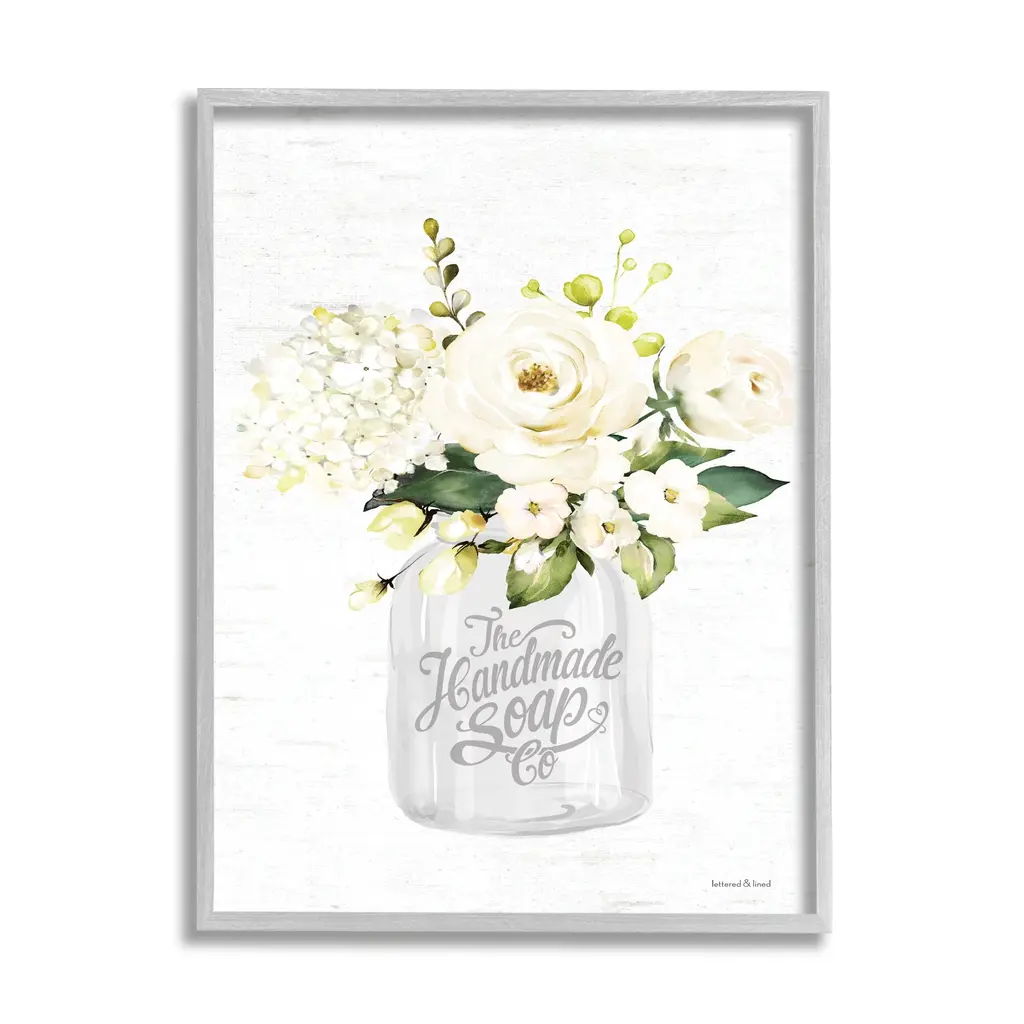 Stupell Handmade Soap Co. Farmhouse White Florals Country Bouquet Framed Wall Art - Pink - 11 X 14 - White