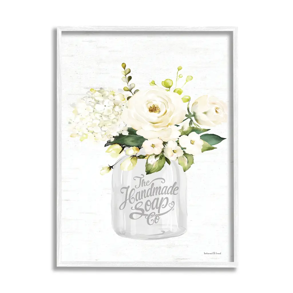 Stupell Handmade Soap Co. Farmhouse White Florals Country Bouquet Framed Wall Art - Pink - 24 X 30 - White