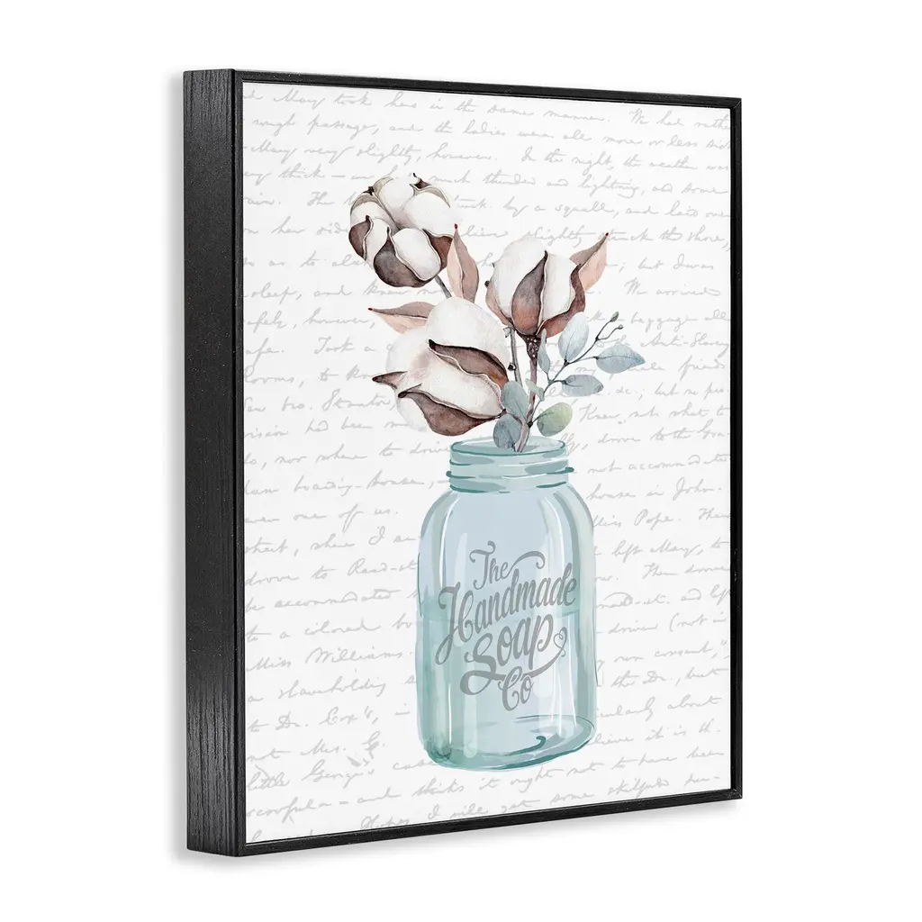 Stupell Handmade Soap Jar Cotton Flower Bathroom Word Design Framed Wall Art, Design By Artist Lettered And Lined - Grey - 16 X 20 - Black