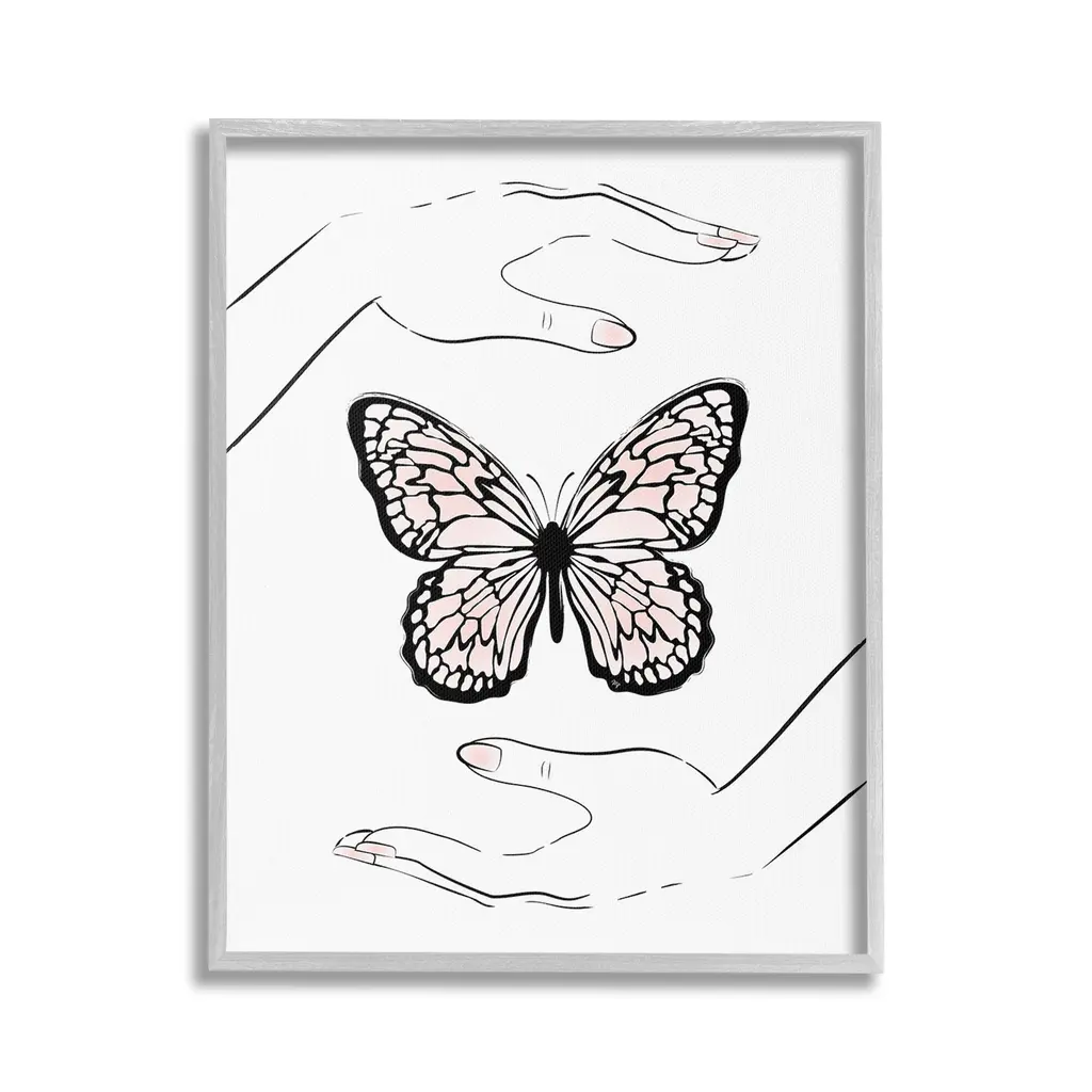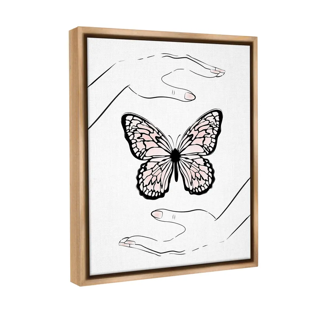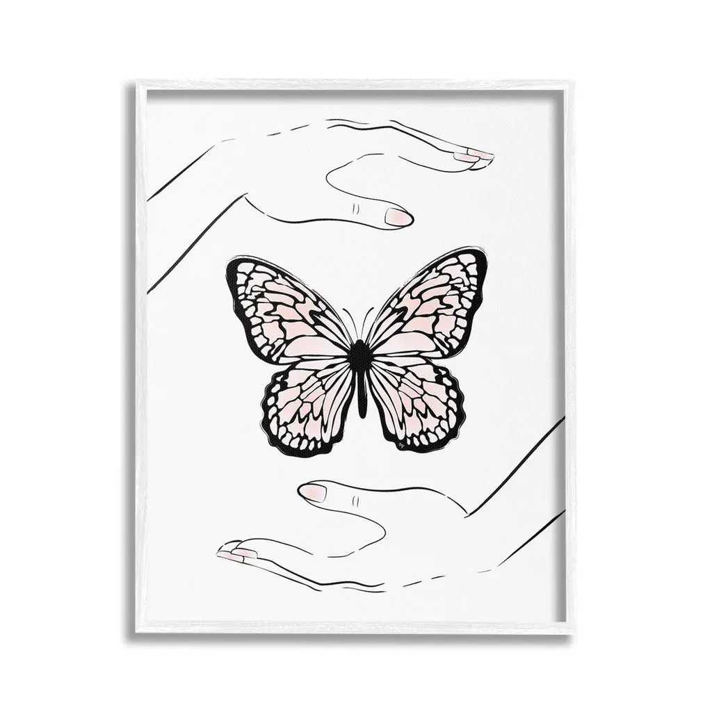 Elevate your home or office to the next level with Stupell Framed Floating Canvas Wall Art. Our premium hand-stretched canvas is mounted securely into a sturdy lightweight frame. The museum-style gap between the wrapped canvas and the box frame gives the illusion of floating artwork. Stupell Wall Art is made in the USA.Features: Dimensions: 17 x 1.7 x 21 Frame, 16 x 1.5 x 20 Canvas ArtFloating Frame Canvas Products are available in sizes 17"x21" and 25"x31". All Floating Frame Canvas Products have a 1.7" Depth.Wall Art is Ready to Hang with Hardware Free Hanging. No Installation required. For Easy Set Up Lean or Layer Artwork on Shelf or Against Wall. Artwork is Permently Fixed into the Frame.Our elevated 1.7" Thick Floating Frame is the perfect complement to our canvas style Wall Art. We use only the highest quality inks in house with industry leading printing solutions. Canvas is hand stretched over a durable wood foundation and then mounted securly into a Modern Box Frame. Made in the USA.Artwork Relates To: Animal, Butterfly, Bug, Insect, Hand, Pastel, Pink, Minimal, GlamDesign by Martina Pavlova