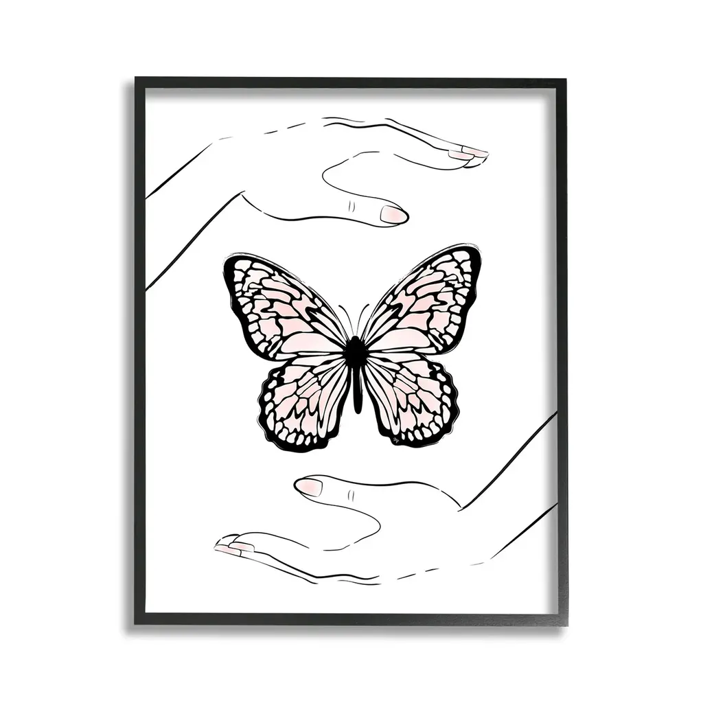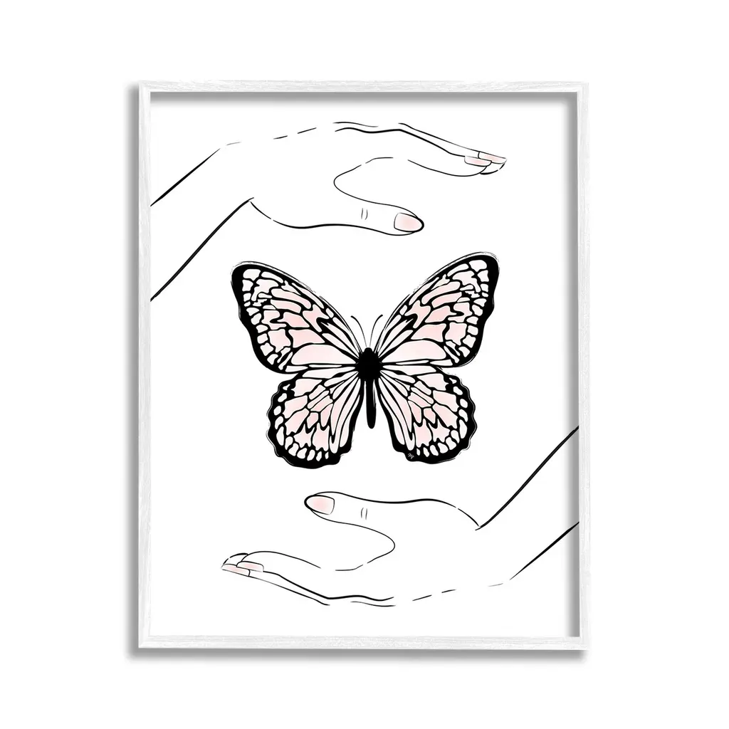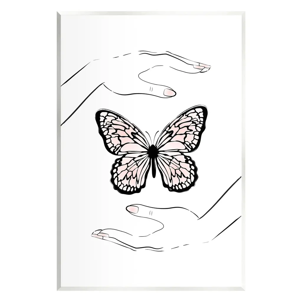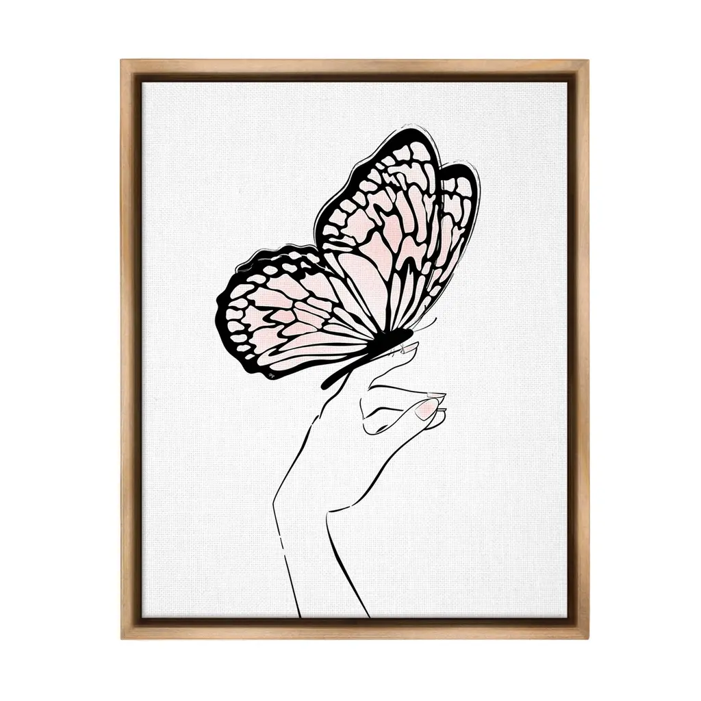 Elevate your home or office to the next level with Stupell Framed Floating Canvas Wall Art. Our premium hand-stretched canvas is mounted securely into a sturdy lightweight frame. The museum-style gap between the wrapped canvas and the box frame gives the illusion of floating artwork. Stupell Wall Art is made in the USA.Features: Dimensions: 17 x 1.7 x 21 Frame, 16 x 1.5 x 20 Canvas ArtFloating Frame Canvas Products are available in sizes 17"x21" and 25"x31". All Floating Frame Canvas Products have a 1.7" Depth.Wall Art is Ready to Hang with Hardware Free Hanging. No Installation required. For Easy Set Up Lean or Layer Artwork on Shelf or Against Wall. Artwork is Permently Fixed into the Frame.Our elevated 1.7" Thick Floating Frame is the perfect complement to our canvas style Wall Art. We use only the highest quality inks in house with industry leading printing solutions. Canvas is hand stretched over a durable wood foundation and then mounted securly into a Modern Box Frame. Made in the USA.Artwork Relates To: Animal, Butterfly, Bug, Insect, Hand, Pastel, Pink, Minimal, GlamDesign by Martina Pavlova