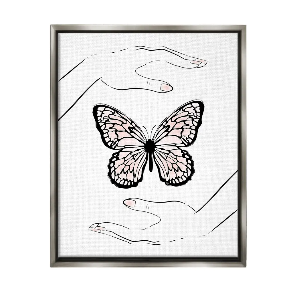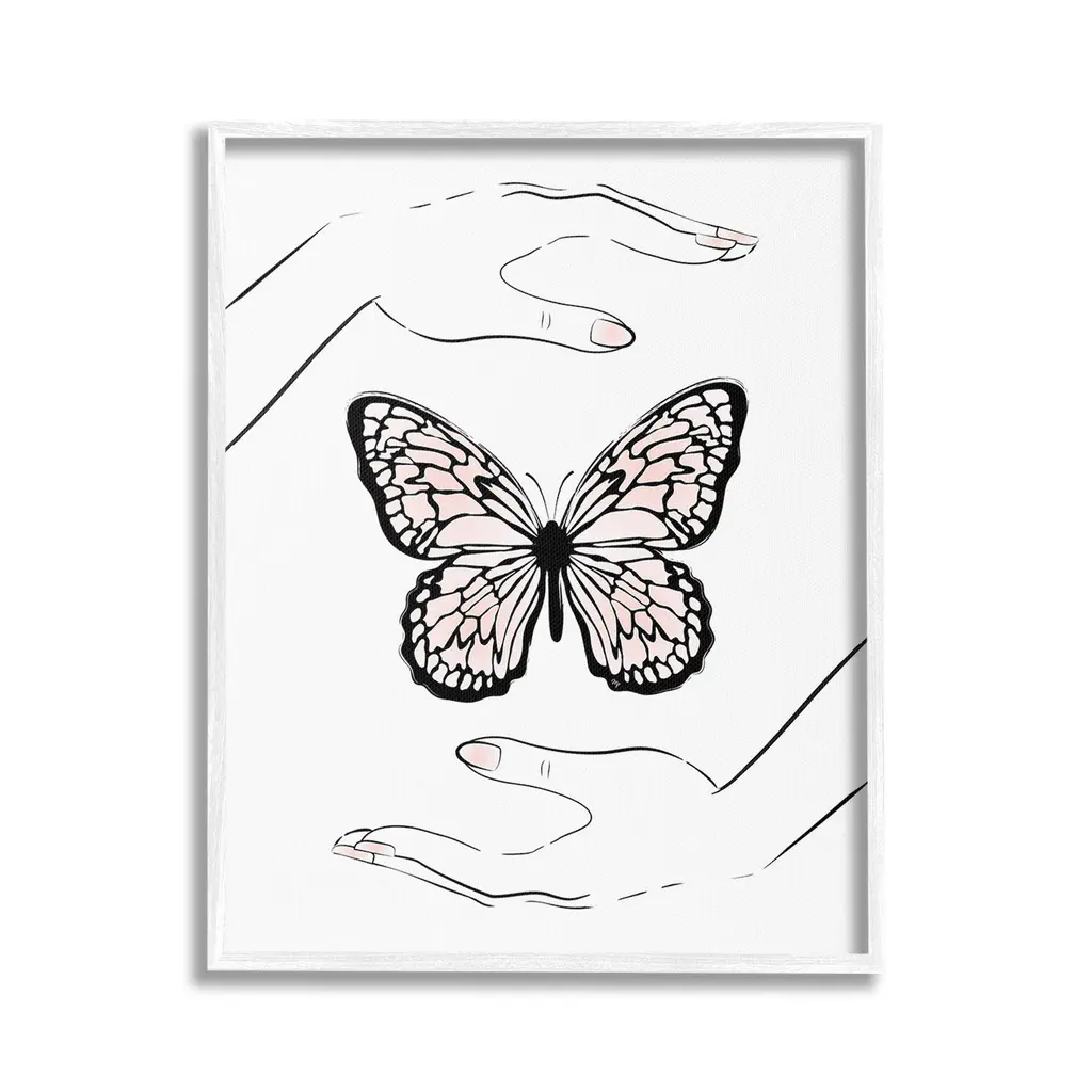 Stupell Hands & Pink Butterfly Framed Giclee Art Design By Martina Pavlova - 11 X 14 - Grey
