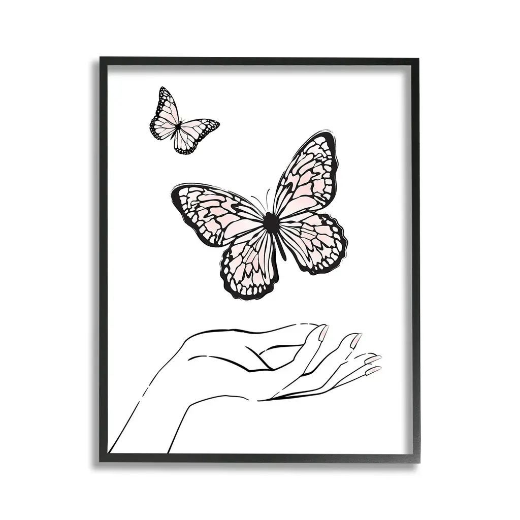 Add dimension to any room with our textured Framed Giclee Artwork. Our framed artwork is securely mounted into a 1.5-inch thick wood grain frame and ready to hang. Frames are available in three alluring styles: black, gray farmhouse and white. In addition, you should check out our oversized options if you want a statement piece. Stupell Wall Art is made in the USA.Features: Dimensions: 11 x 1.5 x 14 FramedFramed Giclee Products are available in the sizes 11"x14", 16"x20" or 24"x30". All Framed Giclee Products have a 1.5" Depth. Wall Art is Ready to Hang with Hardware Free Hanging. No installation required. For Easy Set Up Lean or Layer Artwork on Shelf or Against Wall.Our giclée prints are carefully mounted on a durable MDF backing, and then perfectly finished in a 1.5 inch thick woodgrain frame. Mounted frame colors include black, gray farmhouse and white. Made In USA.Artwork Relates To: Animal, Butterfly, Bug, Insect, Hand, Pastel, Pink, Minimal, GlamDesign by Martina Pavlova
