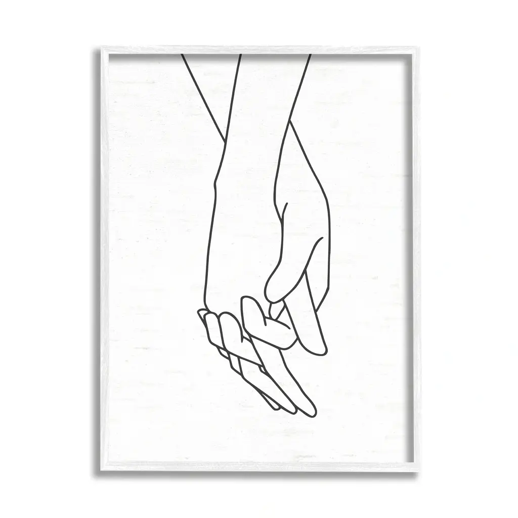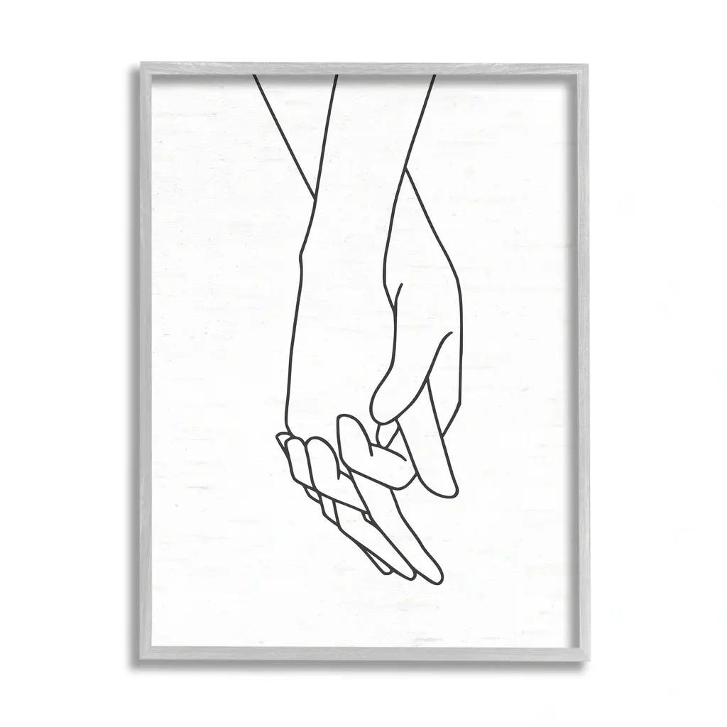 Stupell Hands Intertwined Romantic Gesture Minimal Linework Framed Wall Art - 11 X 14 - Grey