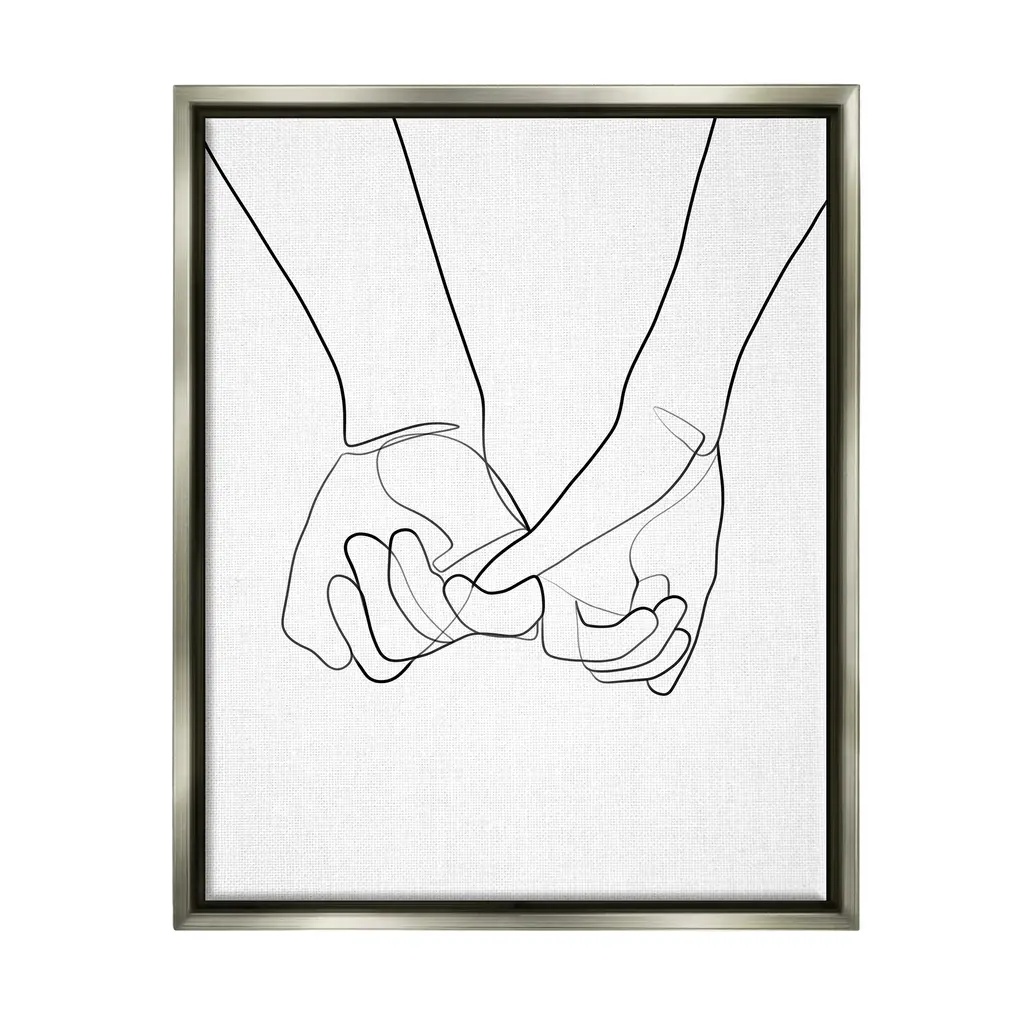 Stupell Hands Intertwined Romantic Gesture Minimal Linework Framed Wall Art - 16 X 20 - Grey