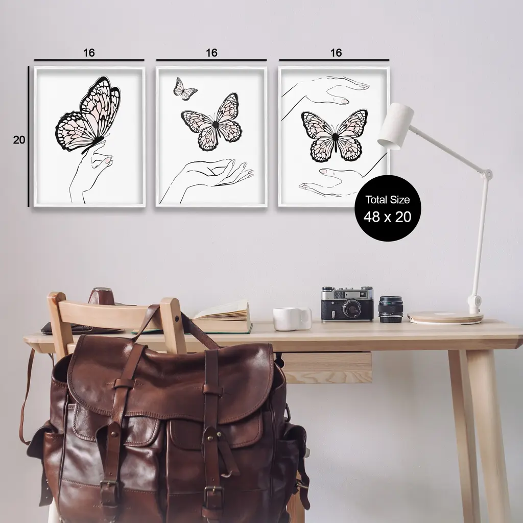 Stupell Hands With Butterflies Framed Giclee Art Design By Martina Pavlova (Set Of 3) - 16 X 20 - White