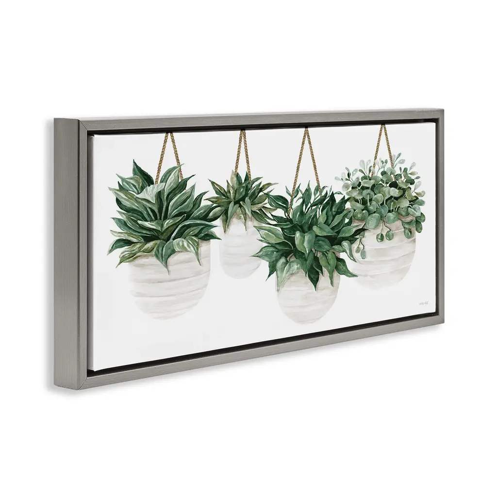 Stupell Hanging Planters House Plants Framed Floater Canvas Wall Art Design By Cindy Jacobs - 25 X 11 - Grey