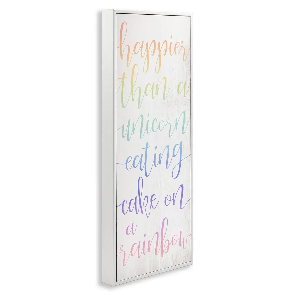 Add dimension to any room with our textured Framed Giclee Artwork. Our framed artwork is securely mounted into a 1.5-inch thick wood grain frame and ready to hang. Frames are available in three alluring styles: black, gray farmhouse and white. In addition, you should check out our oversized options if you want a statement piece. Stupell Wall Art is made in the USA.Features: Dimensions: 10 x 1.5 x 24 FramedFramed Giclee Product Sizes include 10"x24" and 13"x30". All Framed Giclee products have a 1.5" Depth.Wall Art is Ready to Hang with Hardware Free Hanging. No installation required. For Easy Set Up Lean or Layer Artwork on Shelf or Against Wall.Our giclée prints are carefully mounted on a durable MDF backing, and then perfectly finished in a 1.5 inch thick woodgrain frame. Mounted frame colors include black, gray farmhouse and white. Made In USA.Artwork Relates To: Phrase, Kid's, Rainbow, Humor, Unicorn, Pastel, HappinessDesign by Daphne Polselli