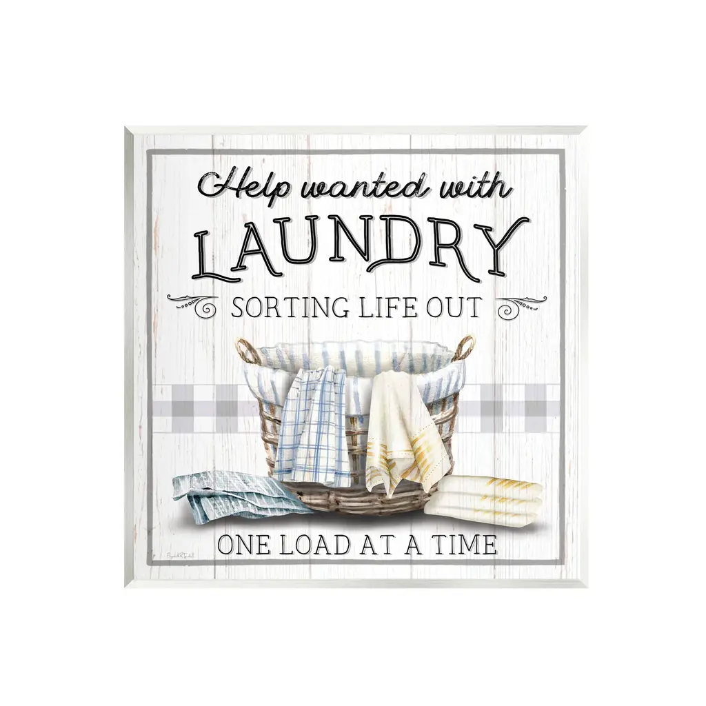 Our wall plaques start as high-quality lithograph prints mounted on durable 0.5-inch thick MDF wood. Each piece is hand finished and comes with a fresh layer of white foil on the sides to give it a crisp, clean look. Plaques arrive ready to hang without installation and come with removable plastic corners to keep them from damage in transit. Wall Art is made in the USA.Features: Dimensions: 12 x 0.5 x 12 InchesWall Art is Ready to Hang with Hardware Free Hanging. No installation required. For Easy Set Up Lean or Layer Artwork on Shelf or Against Wall.All of our wall plaques start off as high quality lithograph prints that are then mounted on durable 0.5 inch thick MDF wood. Each piece is hand finished and comes with a fresh layer of foil on the sides to give it a crisp clean look. Made In USA.Artwork Relates To: Rustic, Laundry, Country, Farmhouse, Vintage, Plaid, Tartan, Happiness is an Empty Laundry Hamper, The Story of my LifeDesign by Elizabeth Tyndall