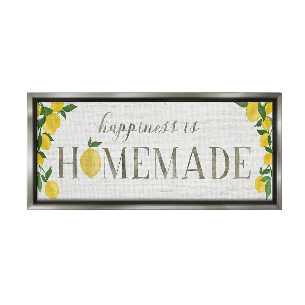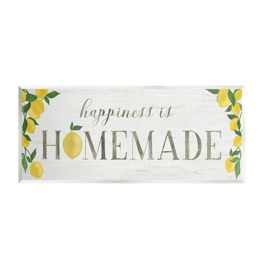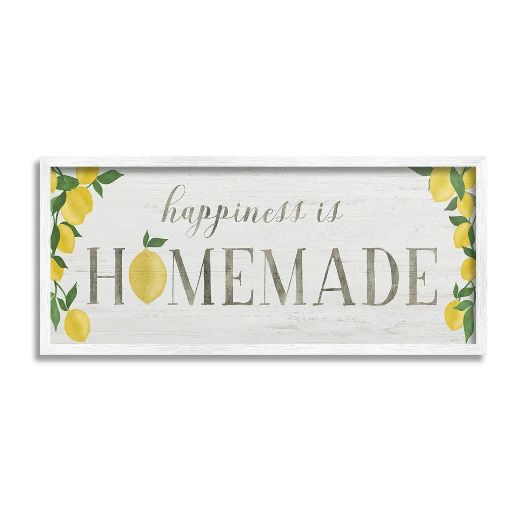 Add dimension to any room with our textured Framed Giclee Artwork. Our framed artwork is securely mounted into a 1.5-inch thick wood grain frame and ready to hang. Frames are available in three alluring styles: black, gray farmhouse and white. In addition, you should check out our oversized options if you want a statement piece. Stupell Wall Art is made in the USA.Features: Dimensions: 24 x 1.5 x 10 FramedFramed Giclee Product Sizes include 24"x10" and 30"x13". All Framed Giclee products have a 1.5" Depth.Wall Art is Ready to Hang with Hardware Free Hanging. No installation required. For Easy Set Up Lean or Layer Artwork on Shelf or Against Wall.Our giclée prints are carefully mounted on a durable MDF backing, and then perfectly finished in a 1.5 inch thick woodgrain frame. Mounted frame colors include black, gray farmhouse and white. Made In USA.Artwork Relates To: Citrus, Food, Fruit, Lemon, Plant, Produce, Country, Kitchen, Rustic, Happiness is HomemadeDesign by Natalie Carpentieri