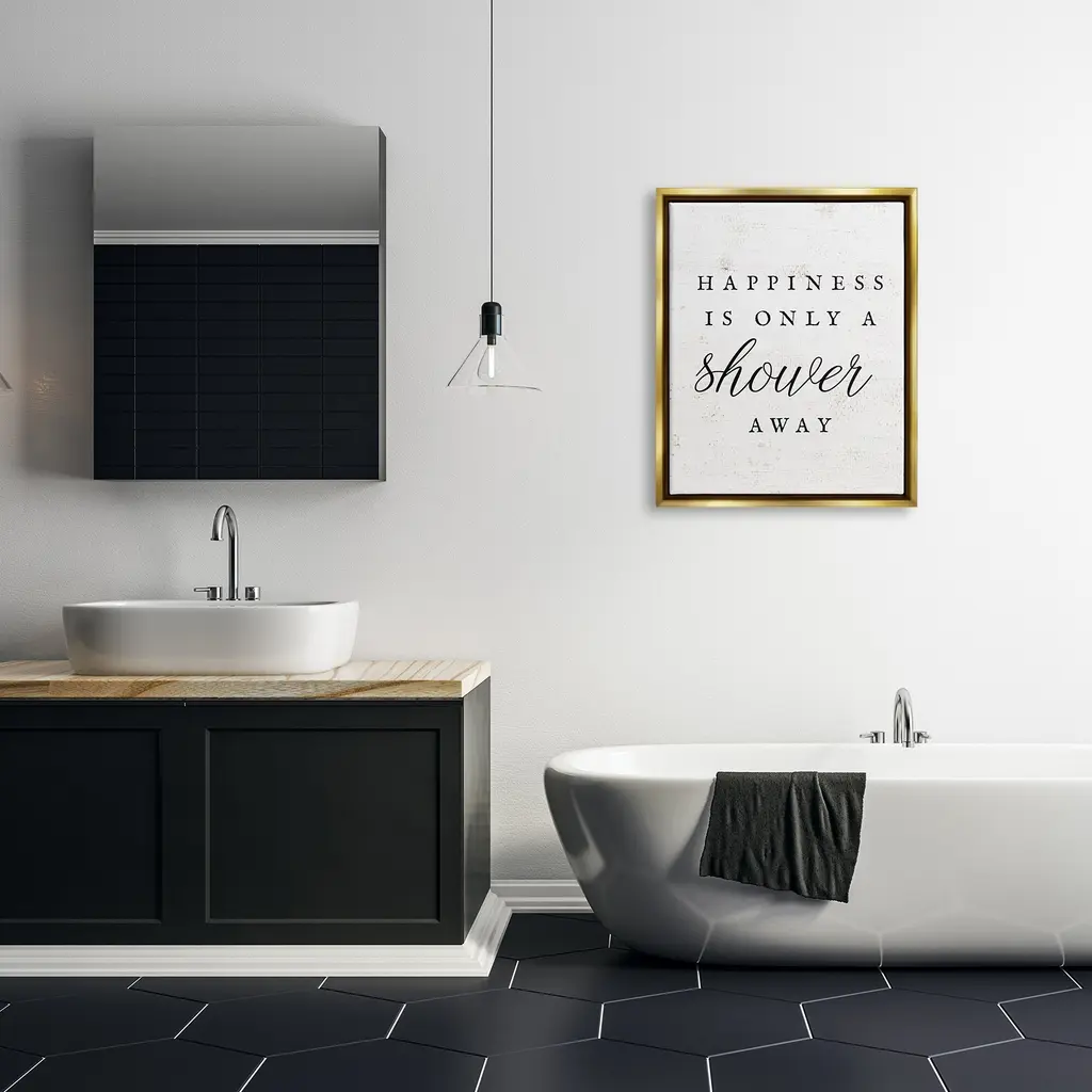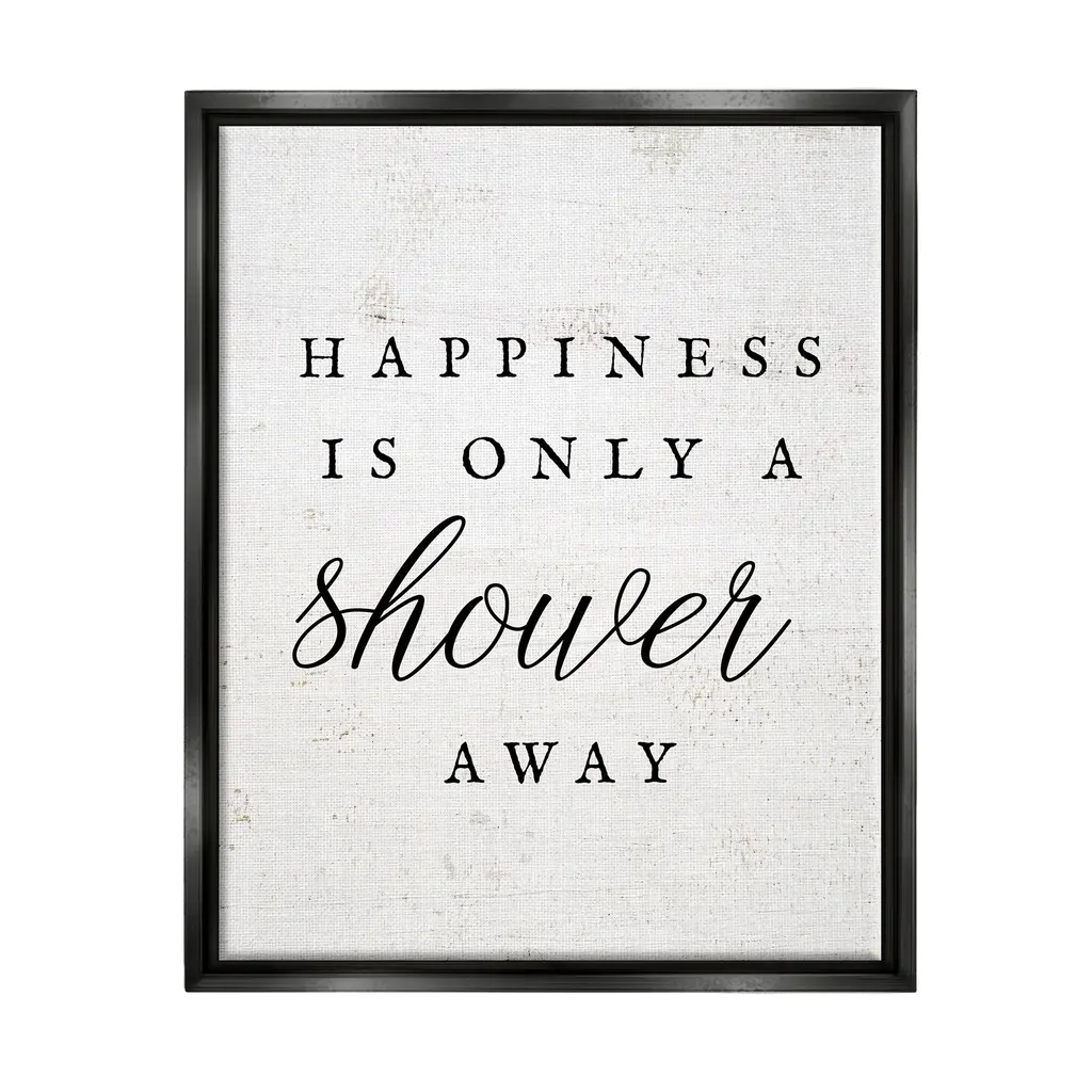 Elevate your home or office to the next level with Stupell Framed Floating Canvas Wall Art. Our premium hand-stretched canvas is mounted securely into a sturdy lightweight frame. The museum-style gap between the wrapped canvas and the box frame gives the illusion of floating artwork. Stupell Wall Art is made in the USA.Features: Dimensions: 17 x 1.7 x 21 Frame, 16 x 1.5 x 20 Canvas ArtFloating Frame Sizes Include Standard: 17 x 1.7 x 21 Oversized: 25 x 1.7 x 31Wall Art is Ready to Hang - No Installation or Hardware Needed. For Easy Set Up Lean or Layer Artwork on Shelf or Against Wall.Our elevated 1.7" Thick Floating Frame is the perfect complement to our canvas style Wall Art. We use only the highest quality inks in house with industry leading printing solutions. Canvas is hand stretched over a durable wood foundation and then mounted securly into a Modern Box Frame. Made in the USA.Artwork Relates To: Rustic, Farmhouse, Bathroom, Phrase, Happiness Is Only A Shower AwayDesign by Lil' Rue
