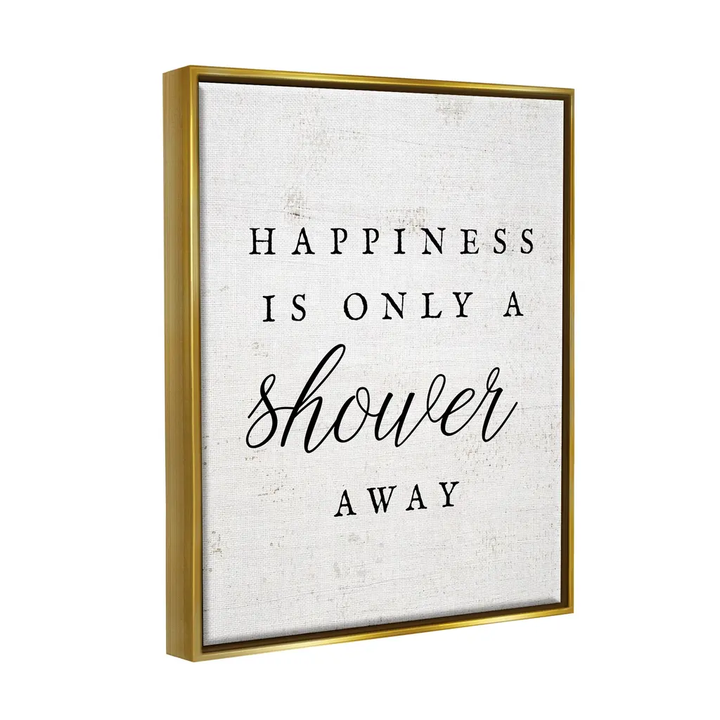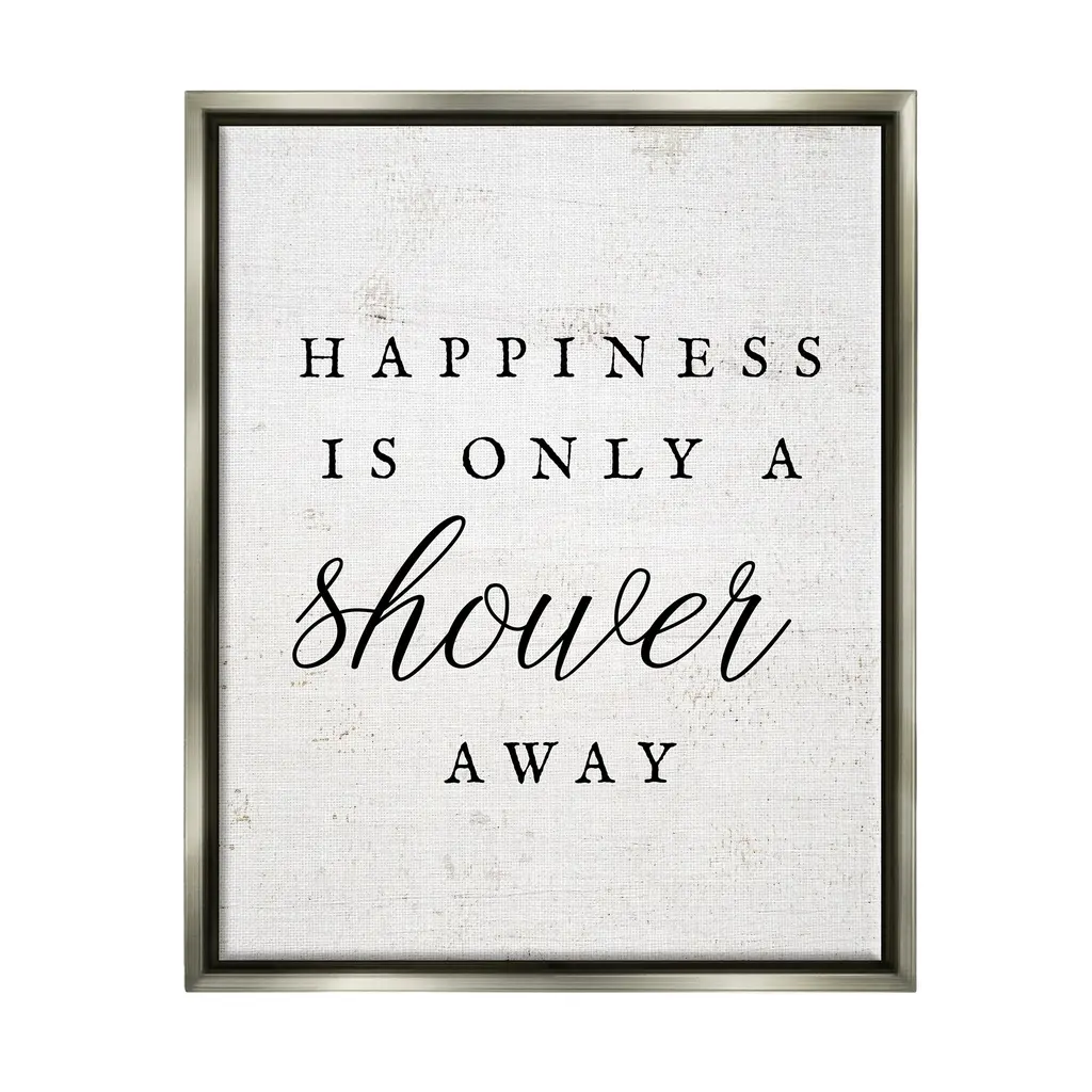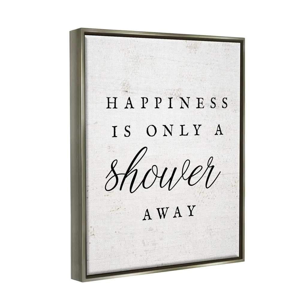 Elevate your home or office to the next level with Stupell Framed Floating Canvas Wall Art. Our premium hand-stretched canvas is mounted securely into a sturdy lightweight frame. The museum-style gap between the wrapped canvas and the box frame gives the illusion of floating artwork. Stupell Wall Art is made in the USA.Features: Dimensions: 17 x 1.7 x 21 Frame, 16 x 1.5 x 20 Canvas ArtFloating Frame Sizes Include Standard: 17 x 1.7 x 21 Oversized: 25 x 1.7 x 31Wall Art is Ready to Hang - No Installation or Hardware Needed. For Easy Set Up Lean or Layer Artwork on Shelf or Against Wall.Our elevated 1.7" Thick Floating Frame is the perfect complement to our canvas style Wall Art. We use only the highest quality inks in house with industry leading printing solutions. Canvas is hand stretched over a durable wood foundation and then mounted securly into a Modern Box Frame. Made in the USA.Artwork Relates To: Rustic, Farmhouse, Bathroom, Phrase, Happiness Is Only A Shower AwayDesign by Lil' Rue