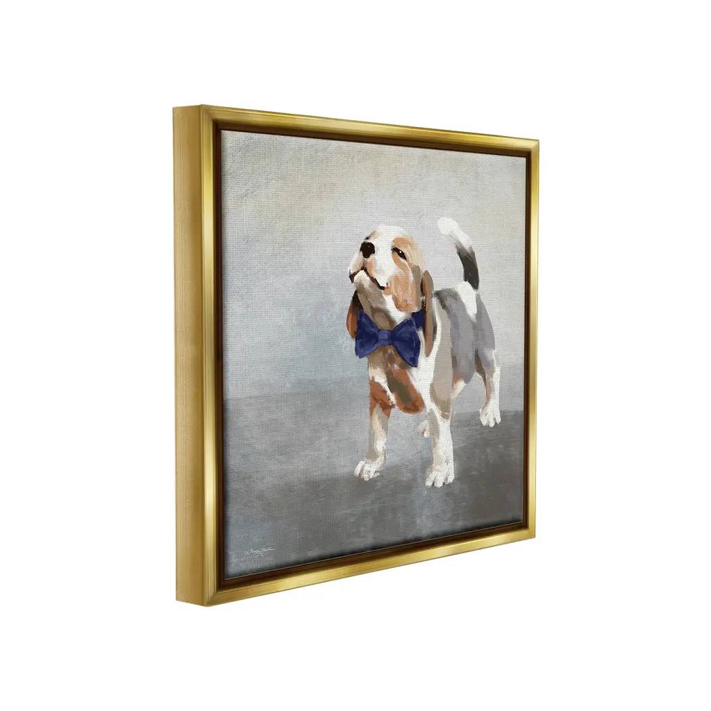 Elevate your home or office to the next level with Stupell Framed Floating Canvas Wall Art. Our premium hand-stretched canvas is mounted securely into a sturdy lightweight frame. The museum-style gap between the wrapped canvas and the box frame gives the illusion of floating artwork. Stupell Wall Art is made in the USA.Features: Dimensions: 18 x 1.7 x 18 Frame, 17 x 1.5 x 17 Canvas ArtFloating Frame Canvas Products are available in sizes 18"x18" and 25"x25". All Floating Frame Canvas Products have a 1.7" Depth.Wall Art is Ready to Hang with Hardware Free Hanging. No Installation required. For Easy Set Up Lean or Layer Artwork on Shelf or Against Wall. Artwork is Permently Fixed into the Frame.Our elevated 1.7" Thick Floating Frame is the perfect complement to our canvas style Wall Art. We use only the highest quality inks in house with industry leading printing solutions. Canvas is hand stretched over a durable wood foundation and then mounted securly into a Modern Box Frame. Made in the USA.Artwork Relates To: Animal, Canine, Dog, Hound, Mammal, Pet, Beagle, BowtieDesign by Molly Mattin