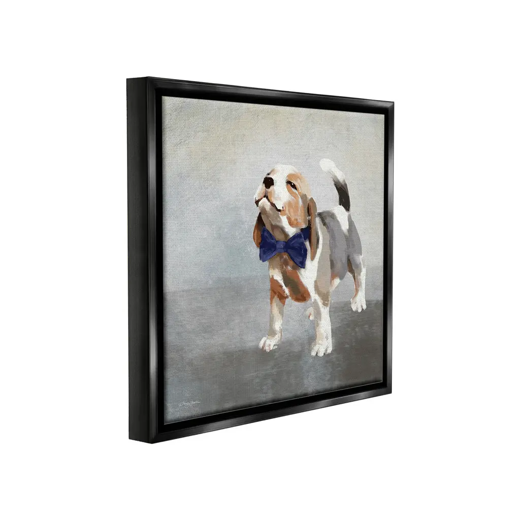 Elevate your home or office to the next level with Stupell Framed Floating Canvas Wall Art. Our premium hand-stretched canvas is mounted securely into a sturdy lightweight frame. The museum-style gap between the wrapped canvas and the box frame gives the illusion of floating artwork. Stupell Wall Art is made in the USA.Features: Dimensions: 18 x 1.7 x 18 Frame, 17 x 1.5 x 17 Canvas ArtFloating Frame Canvas Products are available in sizes 18"x18" and 25"x25". All Floating Frame Canvas Products have a 1.7" Depth.Wall Art is Ready to Hang with Hardware Free Hanging. No Installation required. For Easy Set Up Lean or Layer Artwork on Shelf or Against Wall. Artwork is Permently Fixed into the Frame.Our elevated 1.7" Thick Floating Frame is the perfect complement to our canvas style Wall Art. We use only the highest quality inks in house with industry leading printing solutions. Canvas is hand stretched over a durable wood foundation and then mounted securly into a Modern Box Frame. Made in the USA.Artwork Relates To: Animal, Canine, Dog, Hound, Mammal, Pet, Beagle, BowtieDesign by Molly Mattin