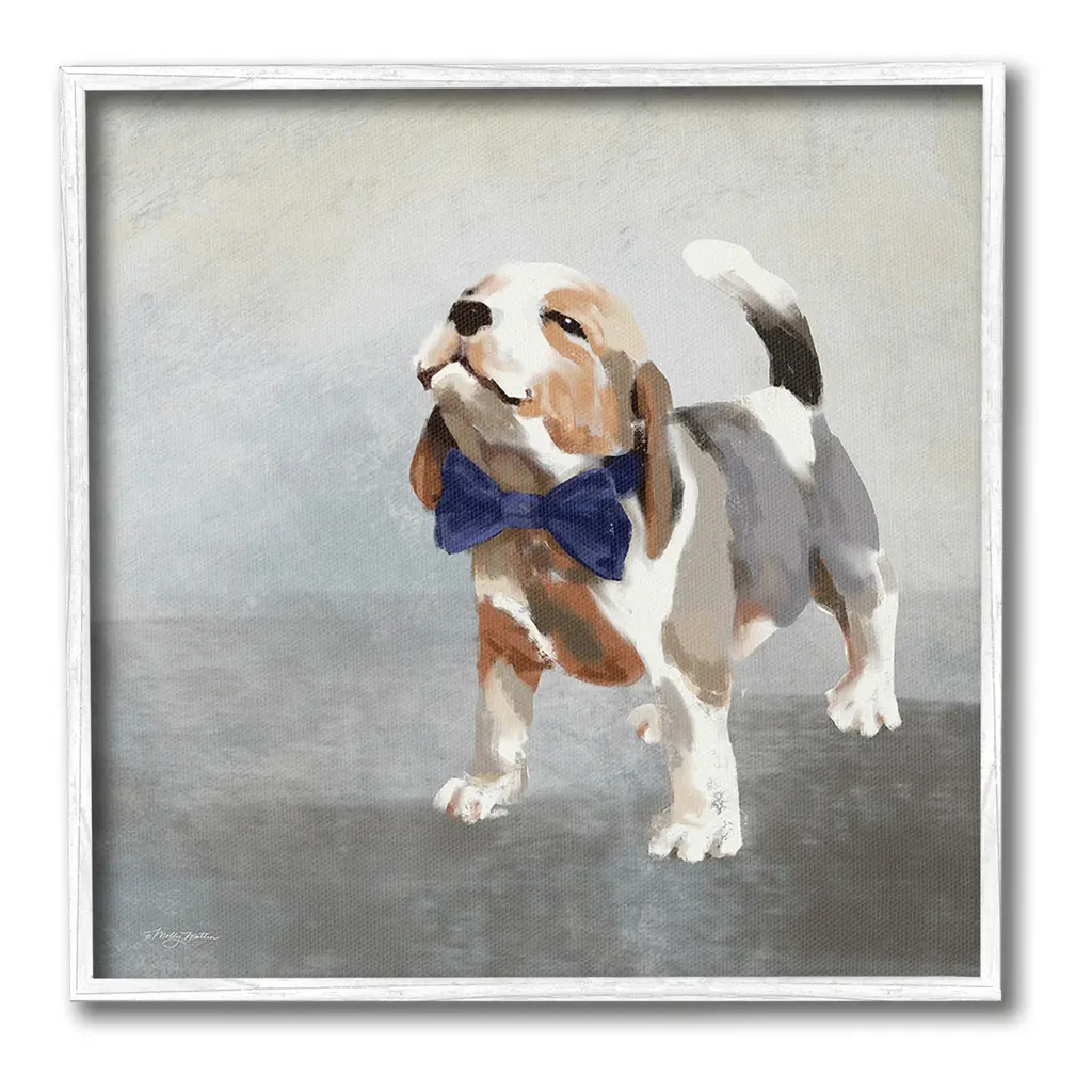 Our wall plaques start as high-quality lithograph prints mounted on durable 0.5-inch thick MDF wood. Each piece is hand finished and comes with a fresh layer of white foil on the sides to give it a crisp, clean look. Plaques arrive ready to hang without installation and come with removable plastic corners to keep them from damage in transit. Stupell Wall Art is made in the USA.Features: Dimensions: 12 x 0.5 x 12 InchesWall Art is Ready to Hang with Hardware Free Hanging. No installation required. For Easy Set Up Lean or Layer Artwork on Shelf or Against Wall.All of our wall plaques start off as high quality lithograph prints that are then mounted on durable 0.5 inch thick MDF wood. Each piece is hand finished and comes with a fresh layer of foil on the sides to give it a crisp clean look. Made In USA.Artwork Relates To: Animal, Canine, Dog, Hound, Mammal, Pet, Beagle, BowtieDesign by Molly Mattin