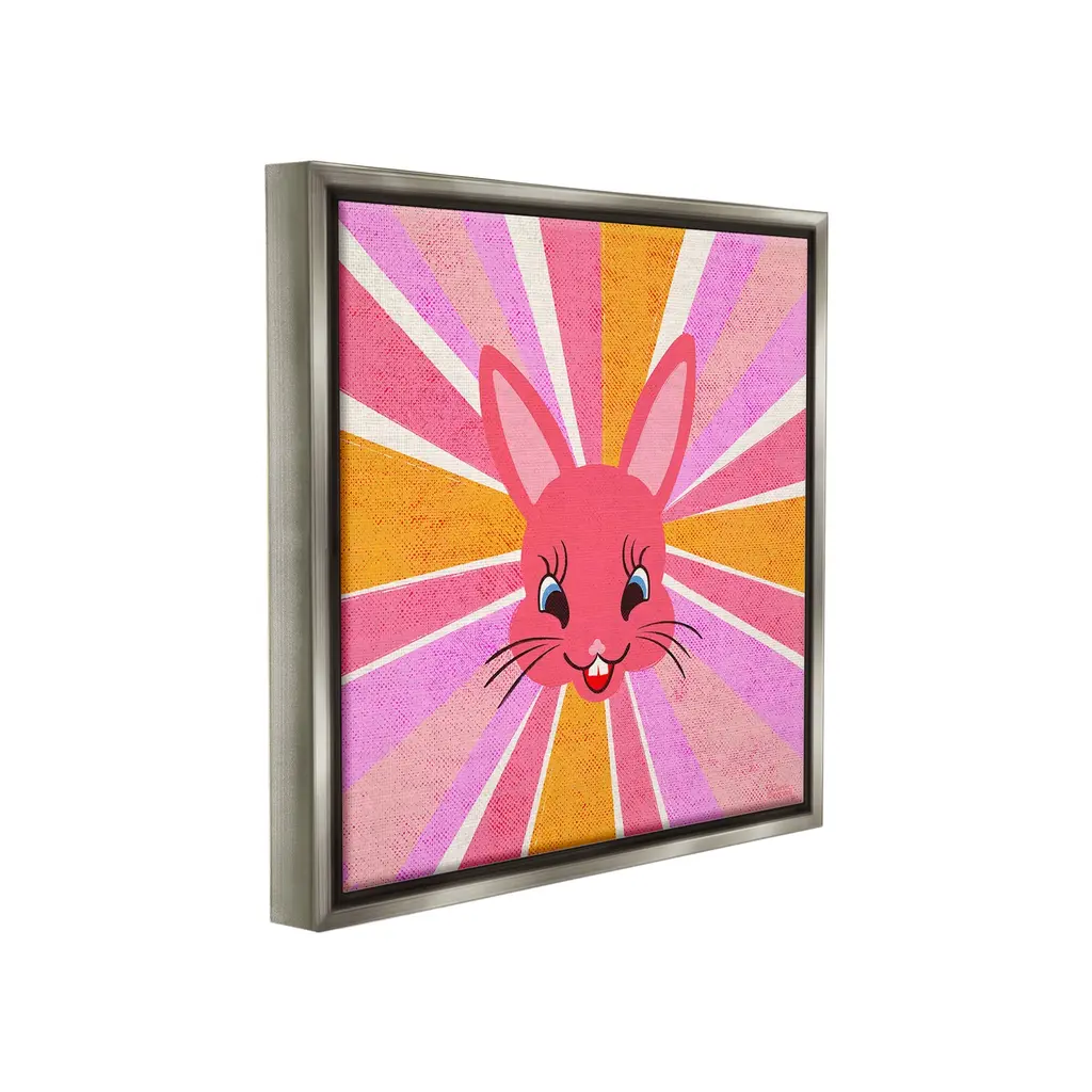 Elevate your home or office to the next level with Stupell Framed Floating Canvas Wall Art. Our premium hand-stretched canvas is mounted securely into a sturdy lightweight frame. The museum-style gap between the wrapped canvas and the box frame gives the illusion of floating artwork. Stupell Wall Art is made in the USA.Features: Dimensions: 18 x 1.7 x 18 Frame, 17 x 1.5 x 17 Canvas ArtFloating Frame Canvas Products are available in sizes 18"x18" and 25"x25". All Floating Frame Canvas Products have a 1.7" Depth.Wall Art is Ready to Hang with Hardware Free Hanging. No Installation required. For Easy Set Up Lean or Layer Artwork on Shelf or Against Wall. Artwork is Permently Fixed into the Frame.Our elevated 1.7" Thick Floating Frame is the perfect complement to our canvas style Wall Art. We use only the highest quality inks in house with industry leading printing solutions. Canvas is hand stretched over a durable wood foundation and then mounted securly into a Modern Box Frame. Made in the USA.Artwork Relates To: Cartoon, Animal, Rabbit, Bunny, Pattern, Sunburst, Abstract, ModernDesign by Carrie Cantwell