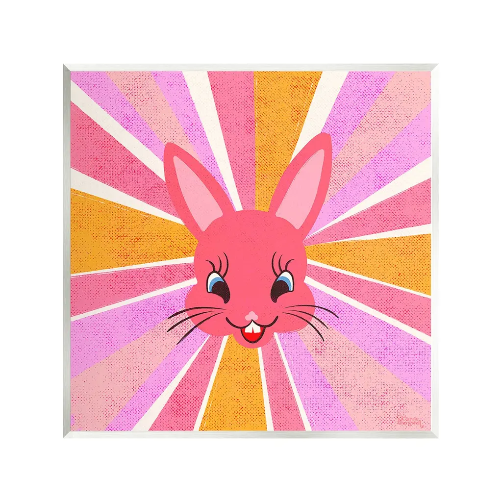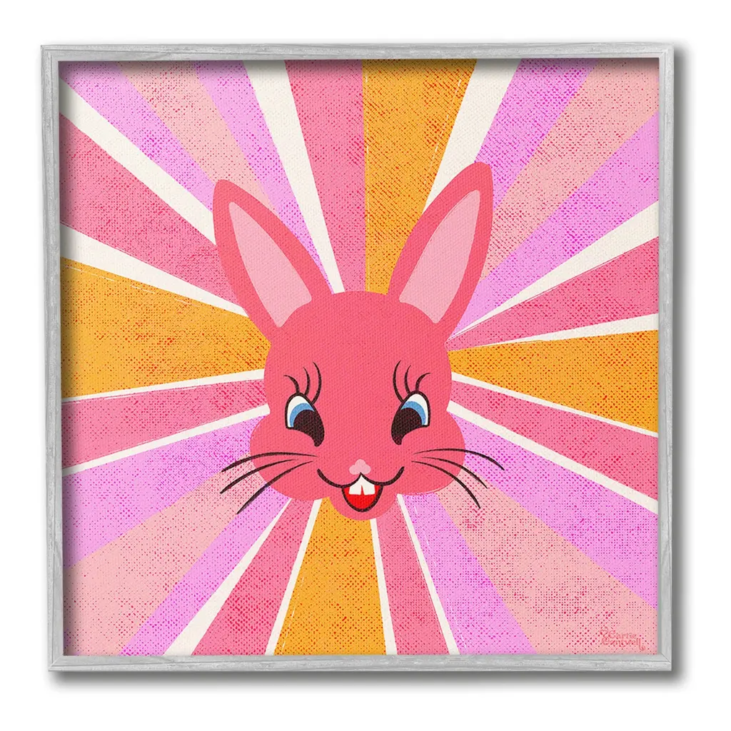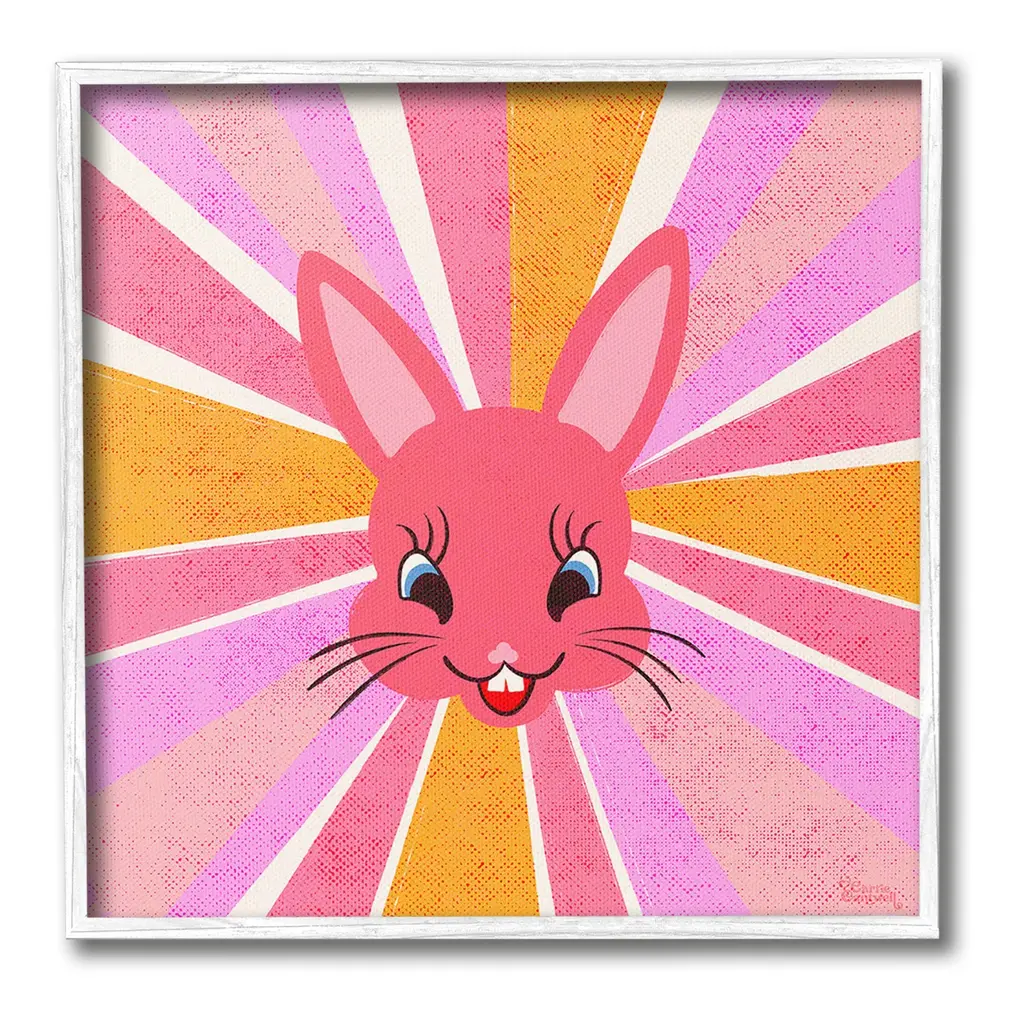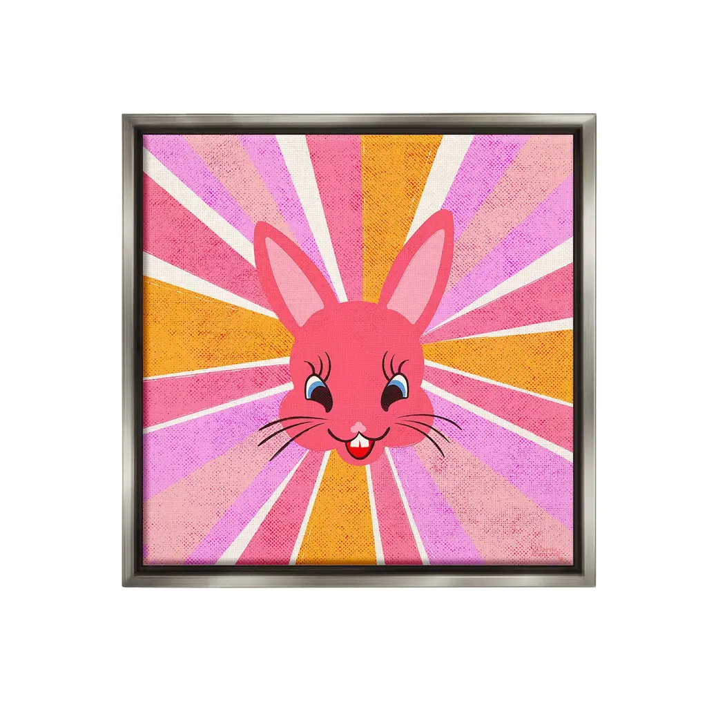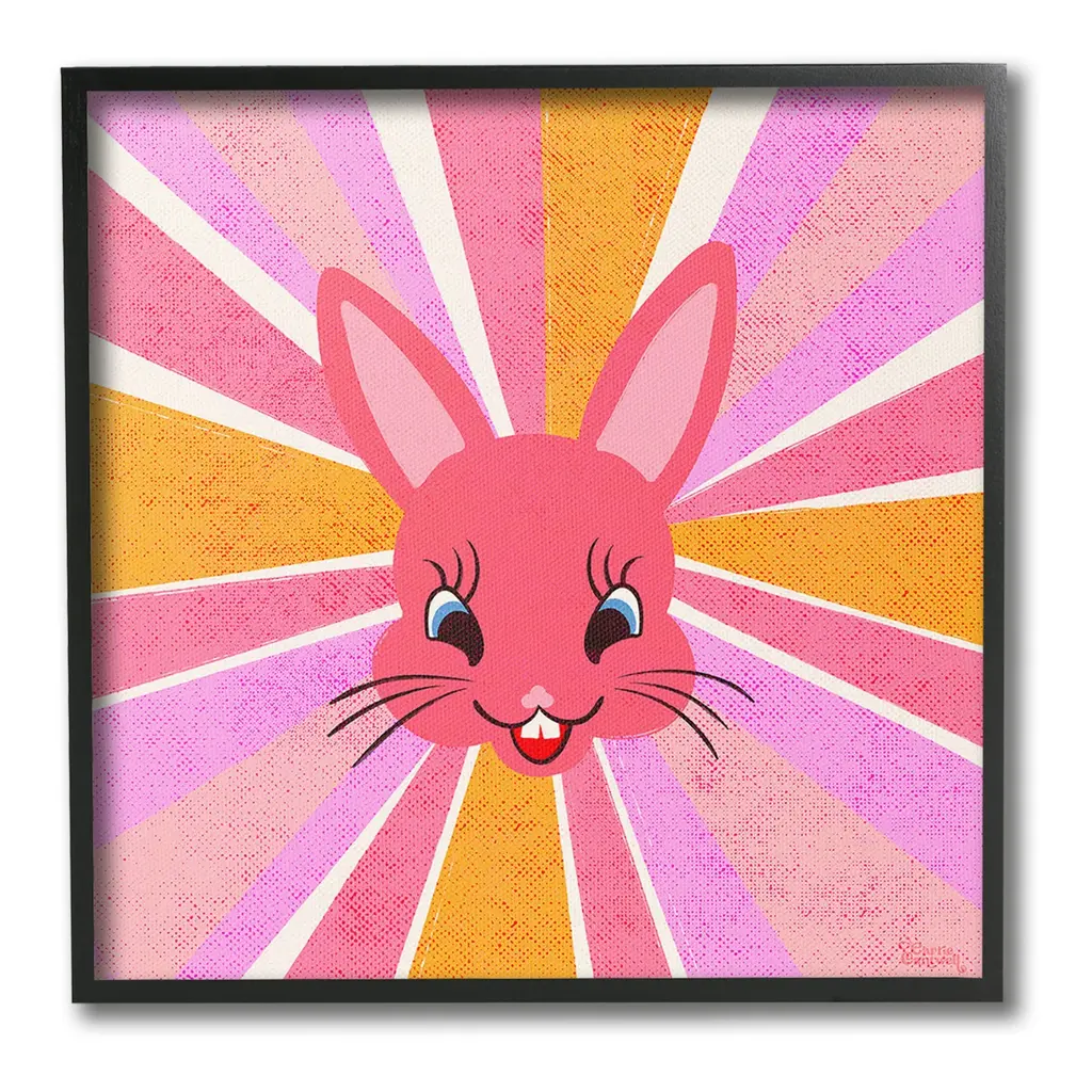 Elevate your home or office to the next level with Stupell Framed Floating Canvas Wall Art. Our premium hand-stretched canvas is mounted securely into a sturdy lightweight frame. The museum-style gap between the wrapped canvas and the box frame gives the illusion of floating artwork. Stupell Wall Art is made in the USA.Features: Dimensions: 18 x 1.7 x 18 Frame, 17 x 1.5 x 17 Canvas ArtFloating Frame Canvas Products are available in sizes 18"x18" and 25"x25". All Floating Frame Canvas Products have a 1.7" Depth.Wall Art is Ready to Hang with Hardware Free Hanging. No Installation required. For Easy Set Up Lean or Layer Artwork on Shelf or Against Wall. Artwork is Permently Fixed into the Frame.Our elevated 1.7" Thick Floating Frame is the perfect complement to our canvas style Wall Art. We use only the highest quality inks in house with industry leading printing solutions. Canvas is hand stretched over a durable wood foundation and then mounted securly into a Modern Box Frame. Made in the USA.Artwork Relates To: Cartoon, Animal, Rabbit, Bunny, Pattern, Sunburst, Abstract, ModernDesign by Carrie Cantwell