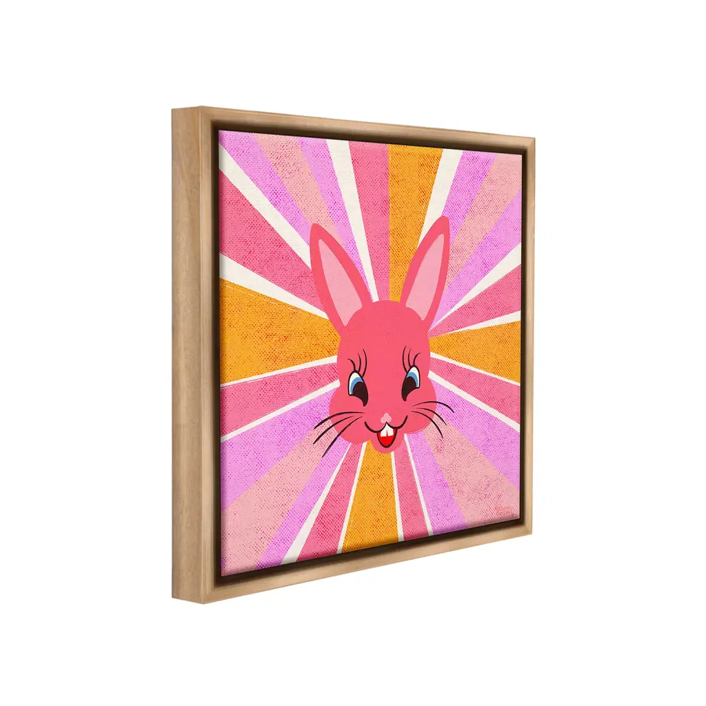 Elevate your home or office to the next level with Stupell Framed Floating Canvas Wall Art. Our premium hand-stretched canvas is mounted securely into a sturdy lightweight frame. The museum-style gap between the wrapped canvas and the box frame gives the illusion of floating artwork. Stupell Wall Art is made in the USA.Features: Dimensions: 18 x 1.7 x 18 Frame, 17 x 1.5 x 17 Canvas ArtFloating Frame Canvas Products are available in sizes 18"x18" and 25"x25". All Floating Frame Canvas Products have a 1.7" Depth.Wall Art is Ready to Hang with Hardware Free Hanging. No Installation required. For Easy Set Up Lean or Layer Artwork on Shelf or Against Wall. Artwork is Permently Fixed into the Frame.Our elevated 1.7" Thick Floating Frame is the perfect complement to our canvas style Wall Art. We use only the highest quality inks in house with industry leading printing solutions. Canvas is hand stretched over a durable wood foundation and then mounted securly into a Modern Box Frame. Made in the USA.Artwork Relates To: Cartoon, Animal, Rabbit, Bunny, Pattern, Sunburst, Abstract, ModernDesign by Carrie Cantwell