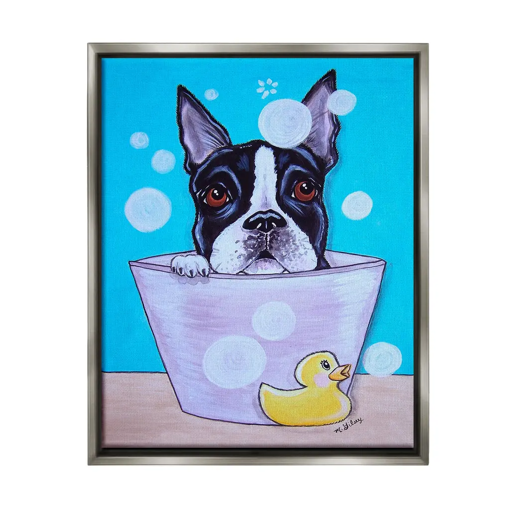 Elevate your home or office to the next level with Stupell Framed Floating Canvas Wall Art. Our premium hand-stretched canvas is mounted securely into a sturdy lightweight frame. The museum-style gap between the wrapped canvas and the box frame gives the illusion of floating artwork. Stupell Wall Art is made in the USA.Features: Dimensions: 17 x 1.7 x 21 Frame, 16 x 1.5 x 20 Canvas ArtFloating Frame Canvas Products are available in sizes 17"x21" and 25"x31". All Floating Frame Canvas Products have a 1.7" Depth.Wall Art is Ready to Hang with Hardware Free Hanging. No Installation required. For Easy Set Up Lean or Layer Artwork on Shelf or Against Wall. Artwork is Permently Fixed into the Frame.Our elevated 1.7" Thick Floating Frame is the perfect complement to our canvas style Wall Art. We use only the highest quality inks in house with industry leading printing solutions. Canvas is hand stretched over a durable wood foundation and then mounted securly into a Modern Box Frame. Made in the USA.Artwork Relates To: Bathroom, Bathtub, Tub, Hygiene, Soap, Nautical, Crab, Doodle, CartoonDesign by Michelle Gilsey
