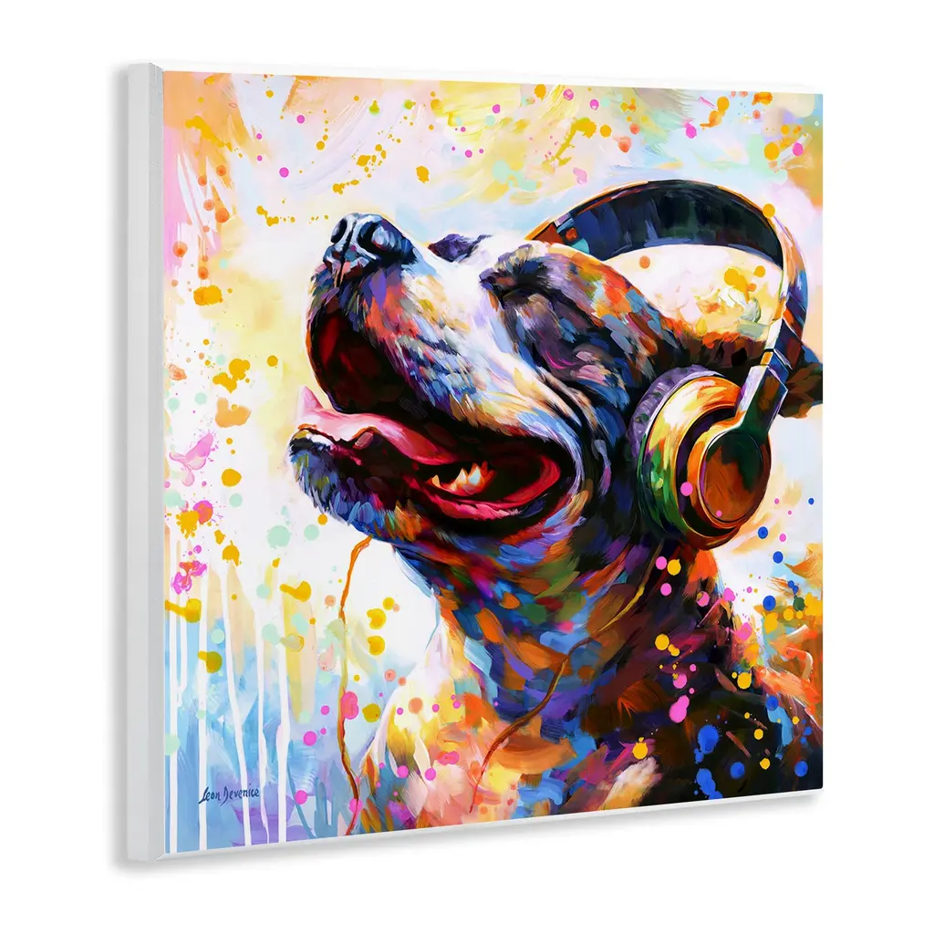 Our wall plaques start as high-quality lithograph prints mounted on durable 0.5-inch thick MDF wood. Each piece is hand finished and comes with a fresh layer of white foil on the sides to give it a crisp, clean look. Plaques arrive ready to hang without installation and come with removable plastic corners to keep them from damage in transit. Stupell Wall Art is made in the USA.Features: Dimensions: 12 x 0.5 x 12 InchesWall Art is Ready to Hang with Hardware Free Hanging. No installation required. For Easy Set Up Lean or Layer Artwork on Shelf or Against Wall.All of our wall plaques start off as high quality lithograph prints that are then mounted on durable 0.5 inch thick MDF wood. Each piece is hand finished and comes with a fresh layer of foil on the sides to give it a crisp clean look. Made In USA.Artwork Relates To: Modern, Painting, Headphones, Animal, Canine, Mammal, Pet, MusicDesign by Leon Devenice
