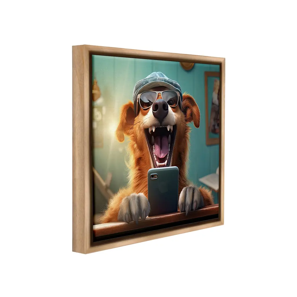 Elevate your home or office to the next level with Stupell Framed Floating Canvas Wall Art. Our premium hand-stretched canvas is mounted securely into a sturdy lightweight frame. The museum-style gap between the wrapped canvas and the box frame gives the illusion of floating artwork. Stupell Wall Art is made in the USA.Features: Dimensions: 18 x 1.7 x 18 Frame, 17 x 1.5 x 17 Canvas ArtFloating Frame Canvas Products are available in sizes 18"x18" and 25"x25". All Floating Frame Canvas Products have a 1.7" Depth.Wall Art is Ready to Hang with Hardware Free Hanging. No Installation required. For Easy Set Up Lean or Layer Artwork on Shelf or Against Wall. Artwork is Permently Fixed into the Frame.Our elevated 1.7" Thick Floating Frame is the perfect complement to our canvas style Wall Art. We use only the highest quality inks in house with industry leading printing solutions. Canvas is hand stretched over a durable wood foundation and then mounted securly into a Modern Box Frame. Made in the USA.Artwork Relates To: Fun, Animal, Canine, Dog, Mammal, Pet, Humor, Funny, Selfie, PhoneDesign by Jim Baldwin