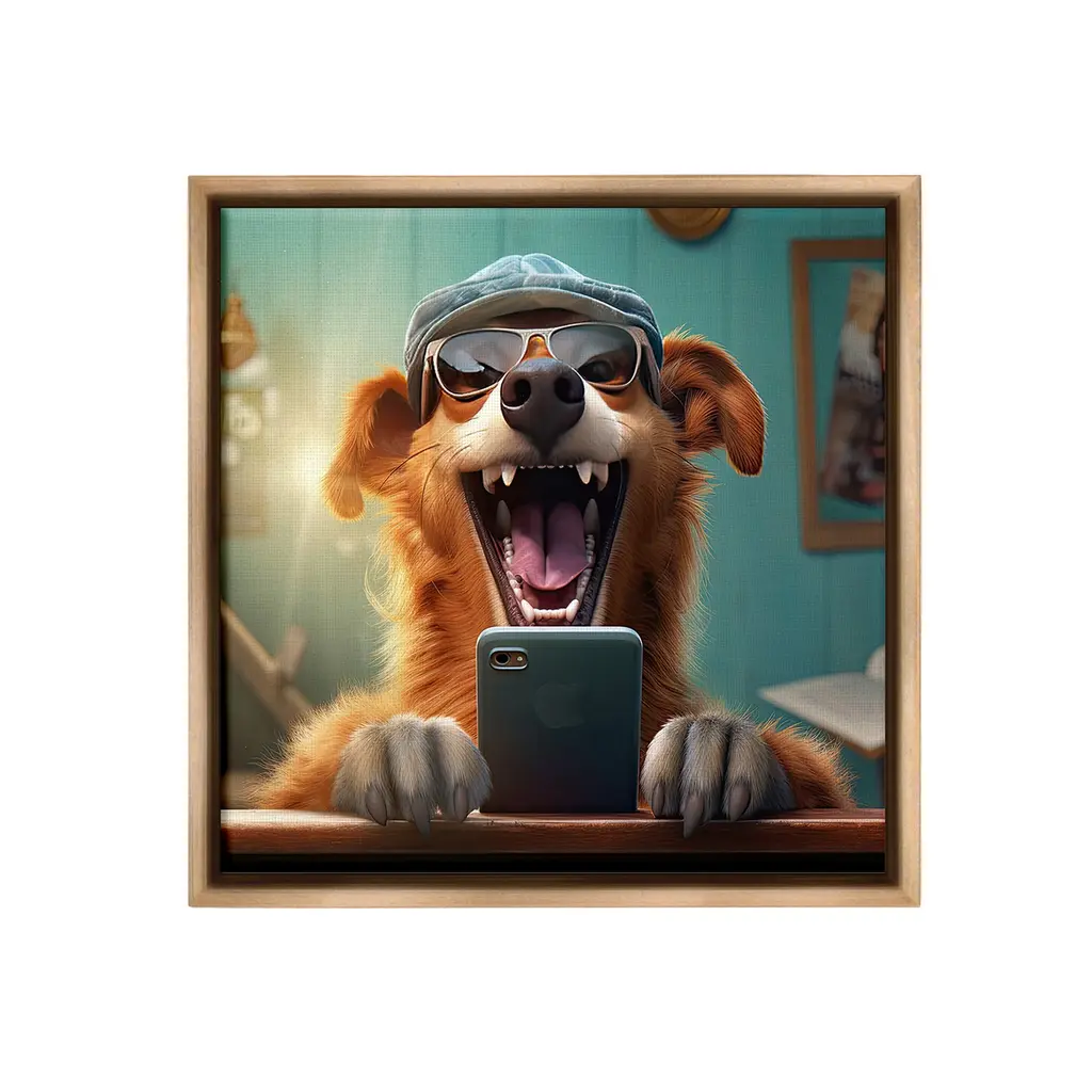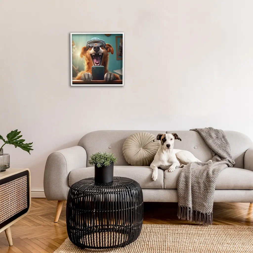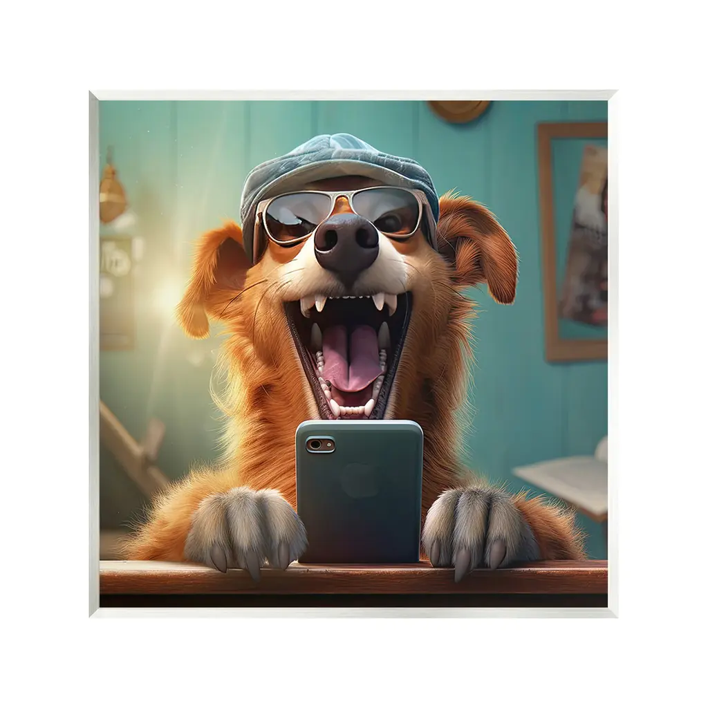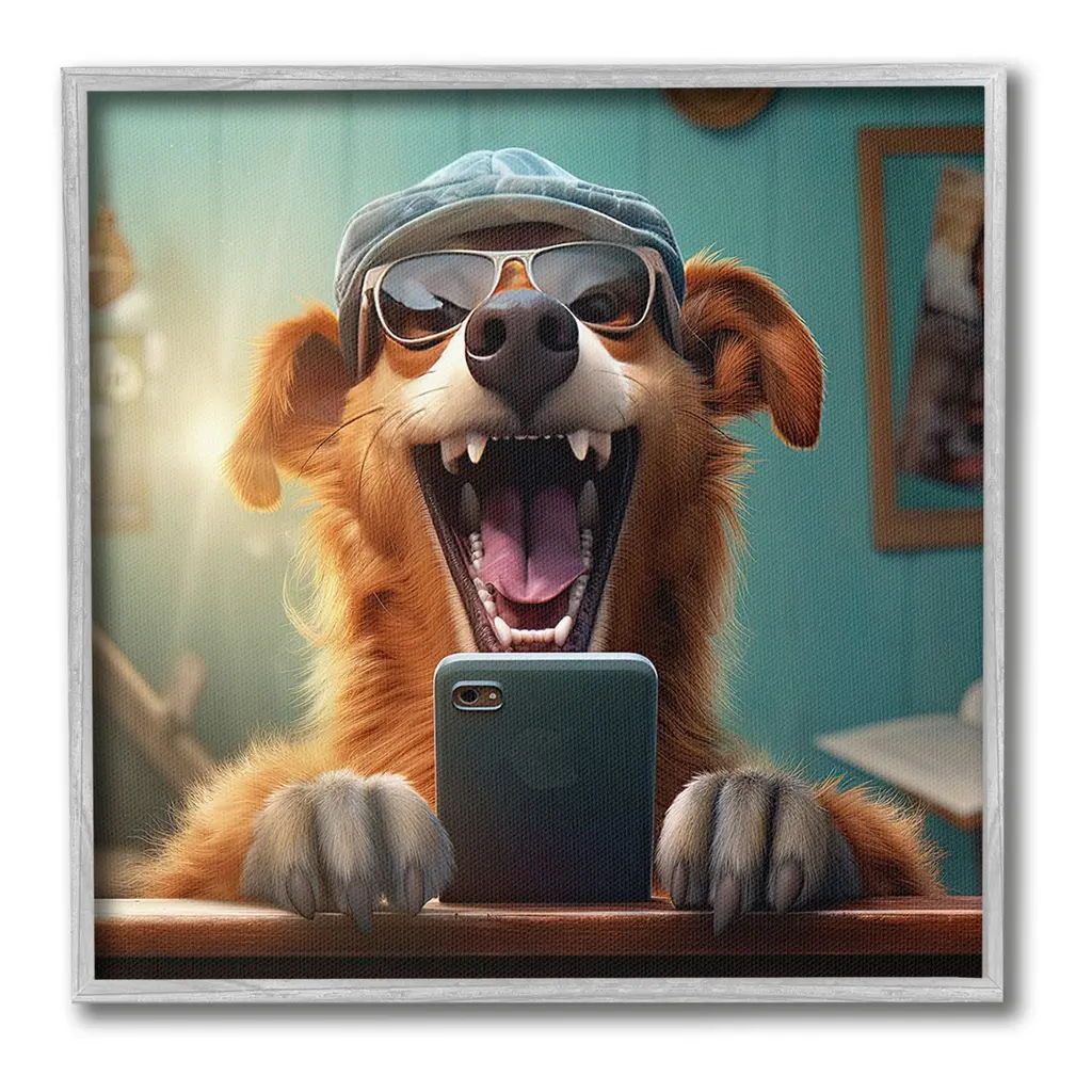 Add dimension to any room with our textured Framed Giclee Artwork. Our framed artwork is securely mounted into a 1.5-inch thick wood grain frame and ready to hang. Frames are available in three alluring styles: black, gray farmhouse and white. In addition, you should check out our oversized options if you want a statement piece. Stupell Wall Art is made in the USA.Features: Dimensions: 12 x 1.5 x 12 FramedFramed Giclee Product Sizes Include 12"x12", 17"x17", and 24"x24". Framed Giclee Products have a 1.5" Depth. Wall Art is Ready to Hang with Hardware Free Hanging. No installation required. For Easy Set Up Lean or Layer Artwork on Shelf or Against Wall.Our giclée prints are carefully mounted on a durable MDF backing, and then perfectly finished in a 1.5 inch thick woodgrain frame. Mounted frame colors include black, gray farmhouse and white. Made In USA.Artwork Relates To: Fun, Animal, Canine, Dog, Mammal, Pet, Humor, Funny, Selfie, PhoneDesign by Jim Baldwin