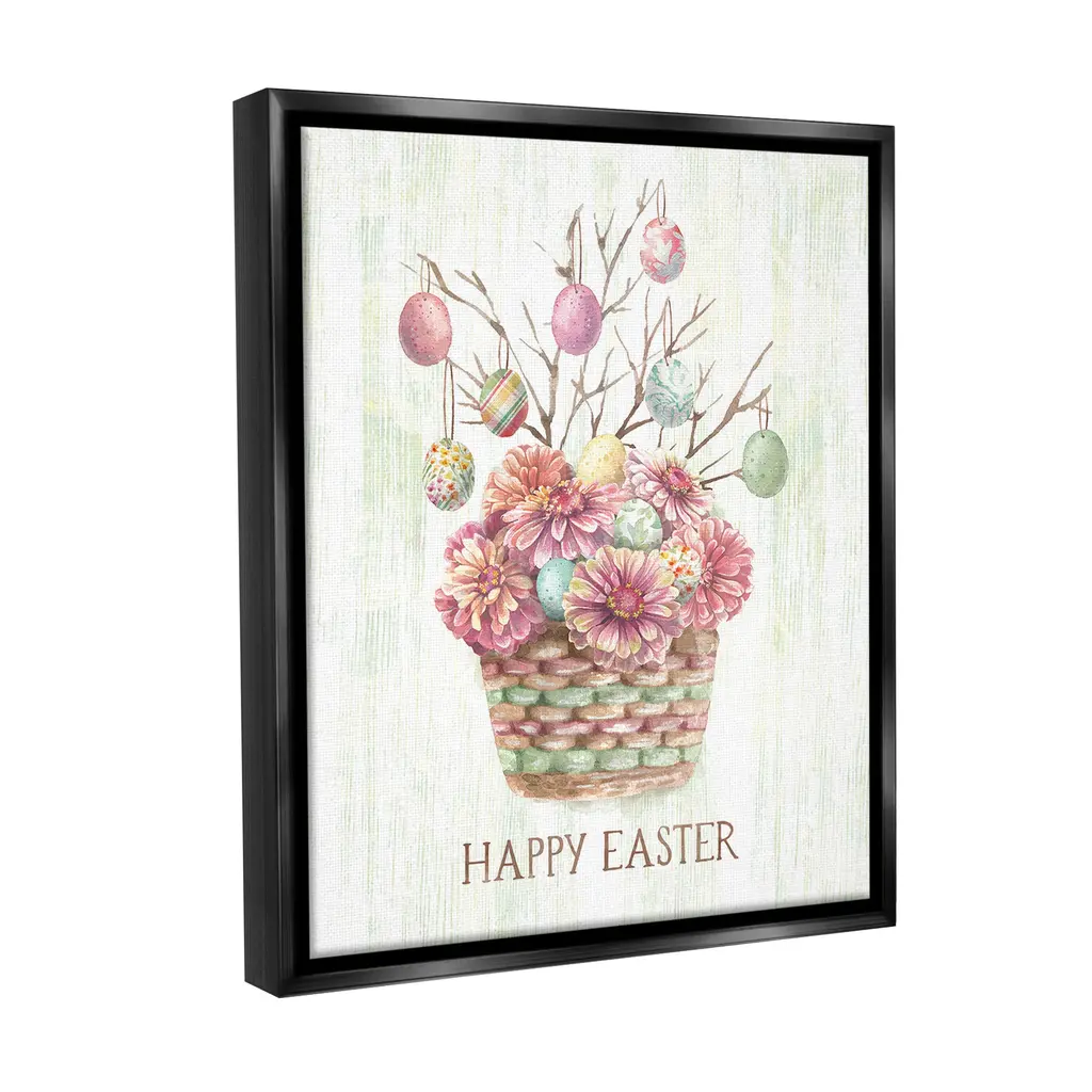Elevate your home or office to the next level with Stupell Framed Floating Canvas Wall Art. Our premium hand-stretched canvas is mounted securely into a sturdy lightweight frame. The museum-style gap between the wrapped canvas and the box frame gives the illusion of floating artwork. Stupell Wall Art is made in the USA.Features: Dimensions: 17 x 1.7 x 21 Frame, 16 x 1.5 x 20 Canvas ArtFloating Frame Canvas Products are available in sizes 17"x21" and 25"x31". All Floating Frame Canvas Products have a 1.7" Depth.Wall Art is Ready to Hang with Hardware Free Hanging. No Installation required. For Easy Set Up Lean or Layer Artwork on Shelf or Against Wall. Artwork is Permently Fixed into the Frame.Our elevated 1.7" Thick Floating Frame is the perfect complement to our canvas style Wall Art. We use only the highest quality inks in house with industry leading printing solutions. Canvas is hand stretched over a durable wood foundation and then mounted securly into a Modern Box Frame. Made in the USA.Artwork Relates To: Egg, Plant, Easter Egg, Basket, Botanical, Easter, Spring, Holiday, Religious, Flower, Floral, Bouquet, Happy EasterDesign by Courtney Morgenstern