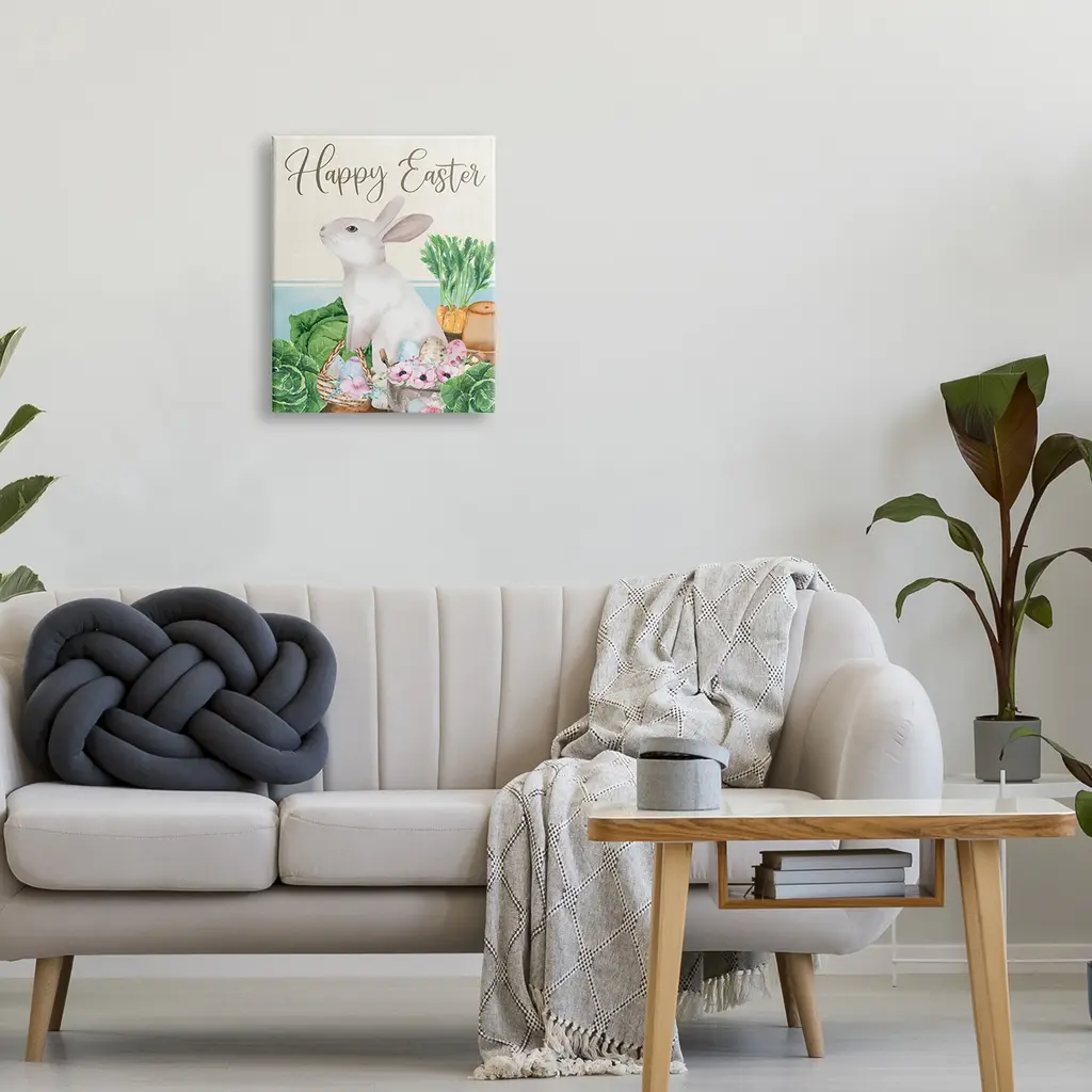 Stupell Happy Easter Bunny Rabbit Greens Eggs Basket Canvas Wall Art - 16 X 20