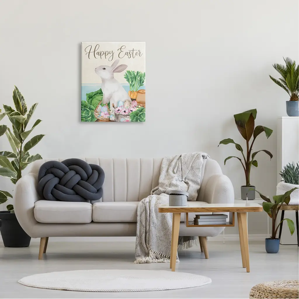 Stupell Happy Easter Bunny Rabbit Greens Eggs Basket Canvas Wall Art - 24 X 30