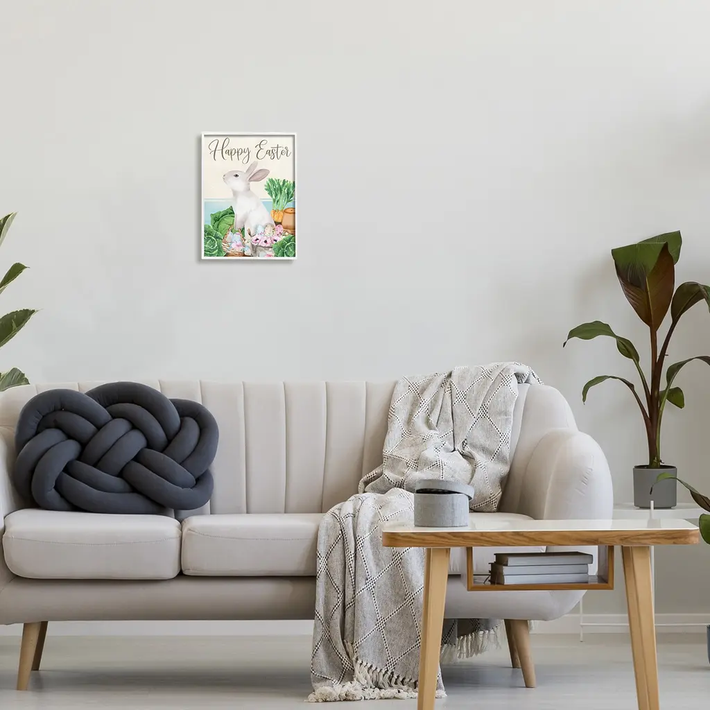 Stupell Happy Easter Bunny Rabbit Greens Eggs Basket Framed Wall Art - Green - 11 X 14 - White