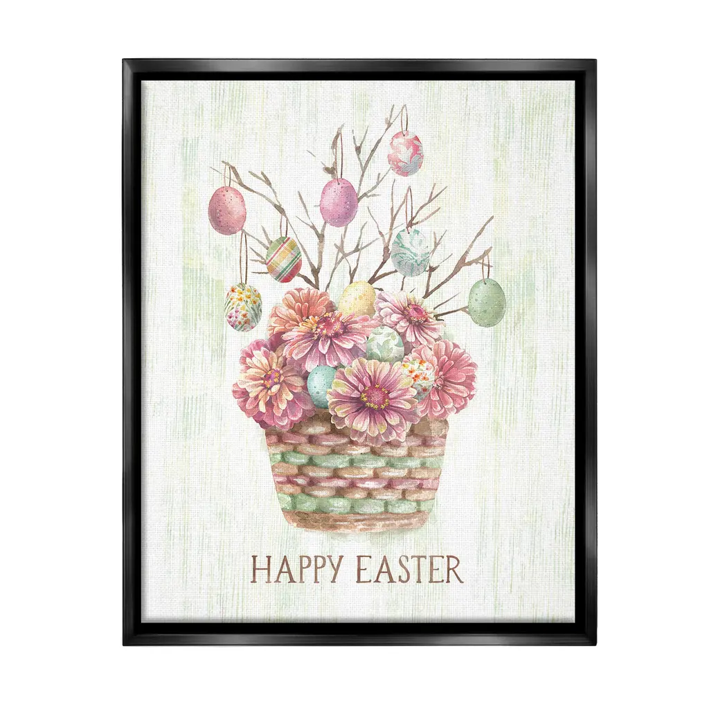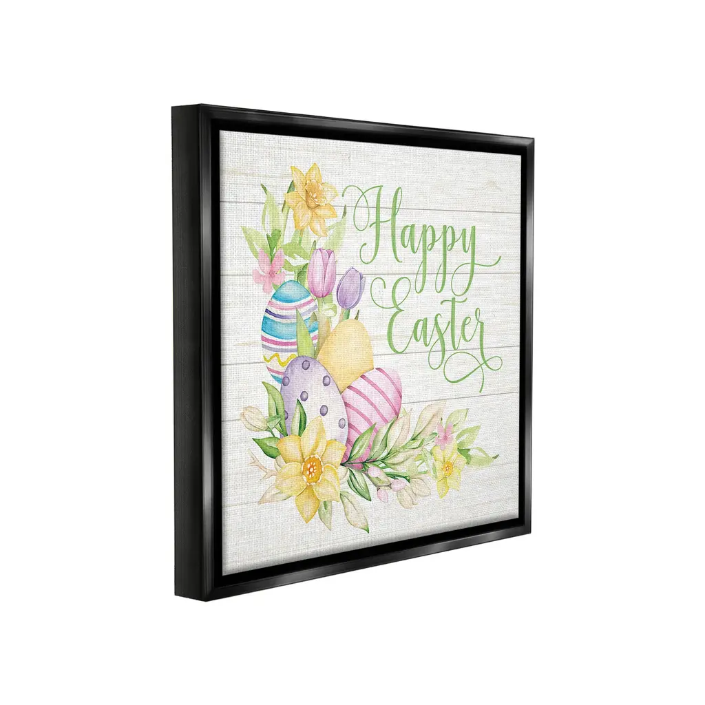 Elevate your home or office to the next level with Stupell Framed Floating Canvas Wall Art. Our premium hand-stretched canvas is mounted securely into a sturdy lightweight frame. The museum-style gap between the wrapped canvas and the box frame gives the illusion of floating artwork. Stupell Wall Art is made in the USA.Features: Dimensions: 18 x 1.7 x 18 Frame, 17 x 1.5 x 17 Canvas ArtFloating Frame Canvas Products are available in sizes 18"x18" and 25"x25". All Floating Frame Canvas Products have a 1.7" Depth.Wall Art is Ready to Hang with Hardware Free Hanging. No Installation required. For Easy Set Up Lean or Layer Artwork on Shelf or Against Wall. Artwork is Permently Fixed into the Frame.Our elevated 1.7" Thick Floating Frame is the perfect complement to our canvas style Wall Art. We use only the highest quality inks in house with industry leading printing solutions. Canvas is hand stretched over a durable wood foundation and then mounted securly into a Modern Box Frame. Made in the USA.Artwork Relates To: Holiday, Spring, Easter, Floral, Flower, Pattern, Country, Cottage, Daffodil, Egg, Easter Egg, Happy EasterDesign by Mollie B.